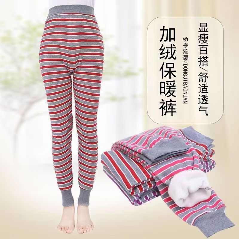 女性の保温ズボンの中で、高齢者のベルベットの弾力性のあるベルベットのズボンの高弾性の熱能ズボンの女性の縞の保温ズボンの高齢者のベルベットのズボン