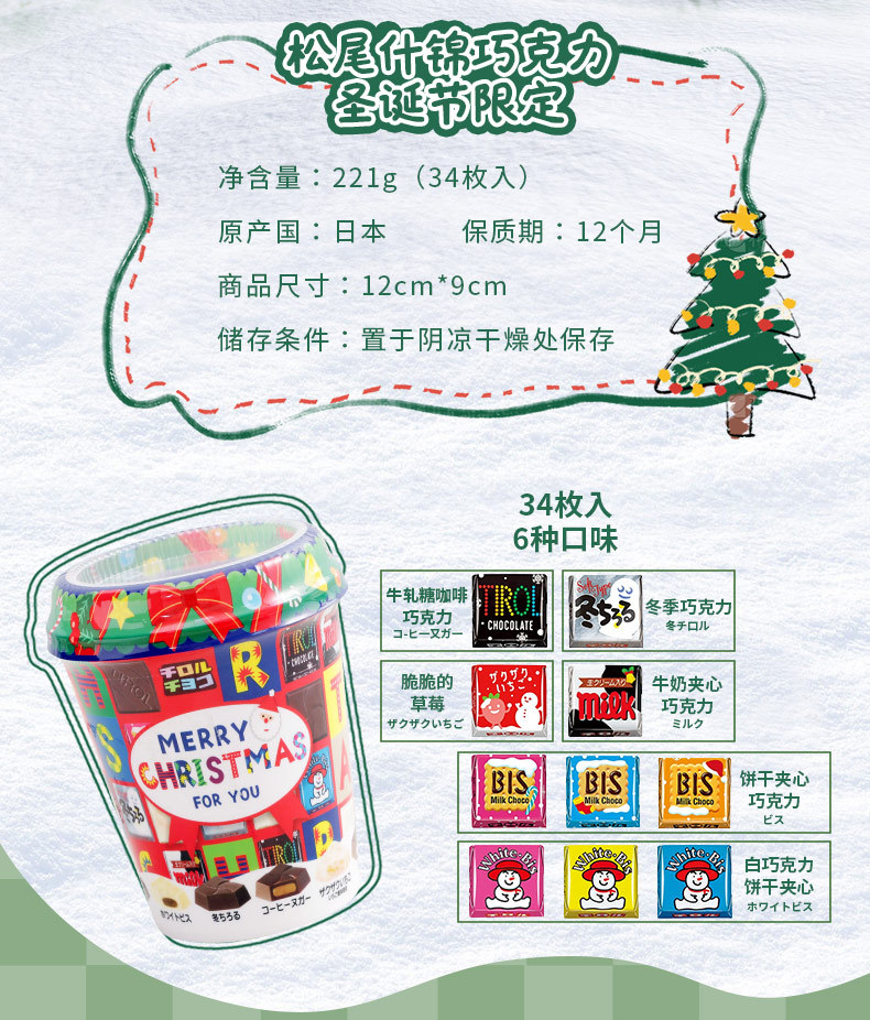 注意:日本/松尾/杂锦巧克力34枚/杯装【圣诞节限定】