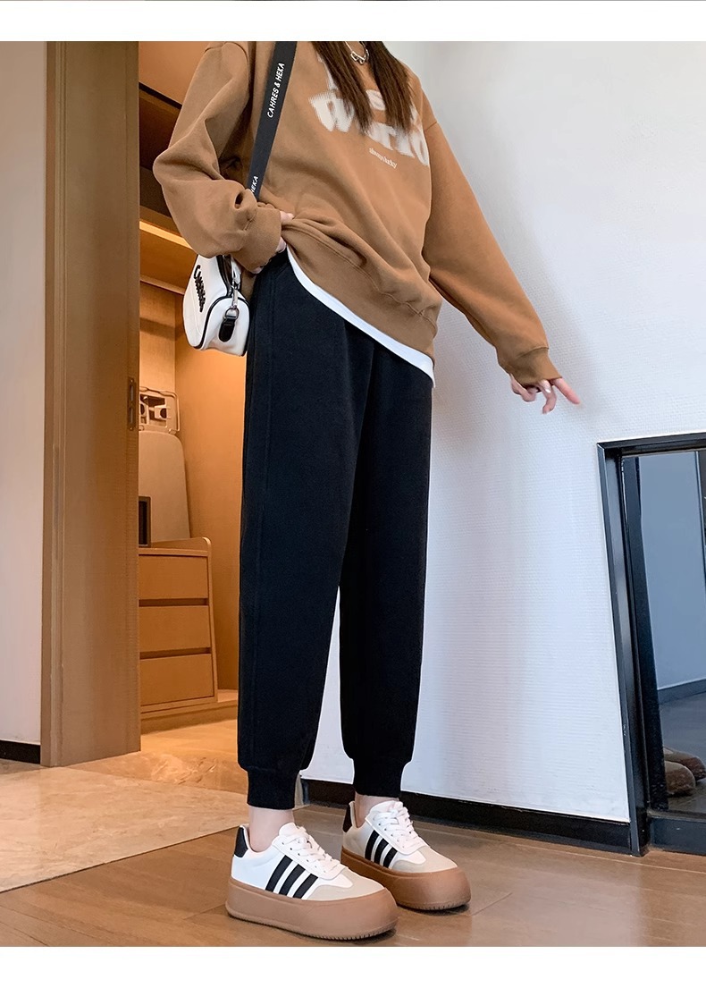 黒のスウェットパンツの女性の春と秋のスタイルプラスベルベット 2025 新しいルーズレッグ大きいサイズ脂肪 mm 小さなカジュアルスウェットパンツ