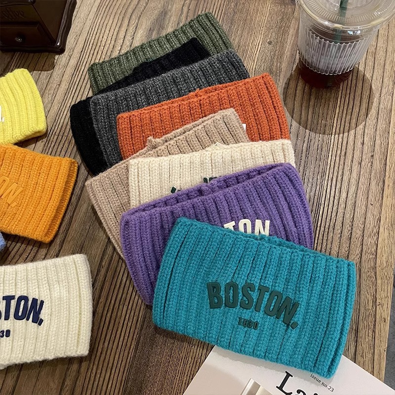 秋冬运动针织发带吸汗字母头带护额头保暖头套发箍女宽边月子头巾