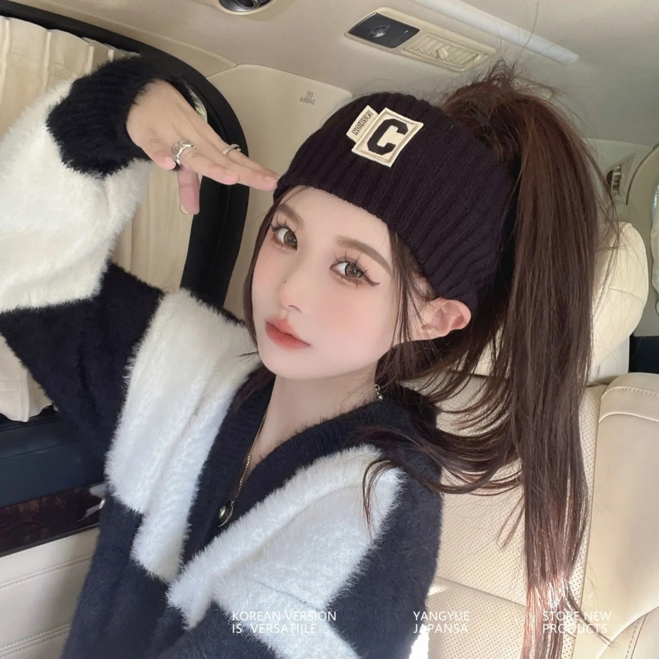 秋冬针织发带女字母宽边毛线帽子发箍扎马尾束发头饰运动头带头箍