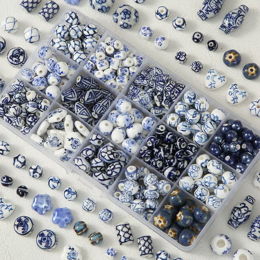 创意中国风青花瓷陶瓷串珠中式古风散珠手链项链diy饰品配件材料