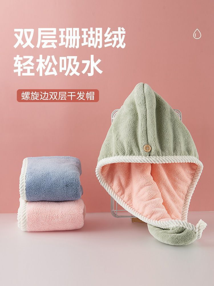 二重の髪の帽子のサンゴの毛の速乾の厚い女性の超強い吸水の成人の学生は髪の毛の家の頭のバスタオルを拭きます。