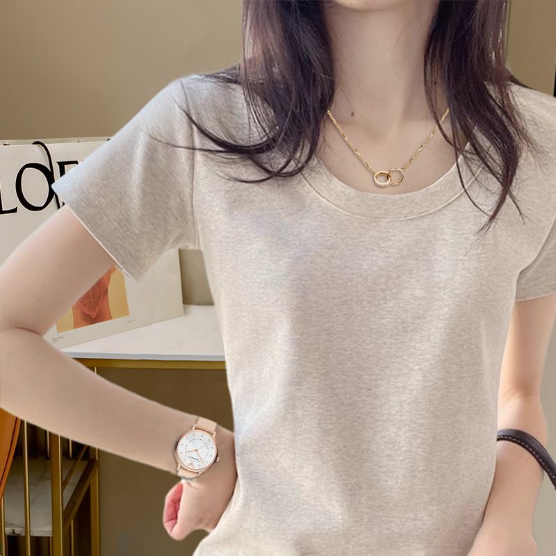 インナーシャツの女性の小柄な純色の長袖tシャツのシックなハイウエストの不規則なショートタイプの秋冬上着の新作