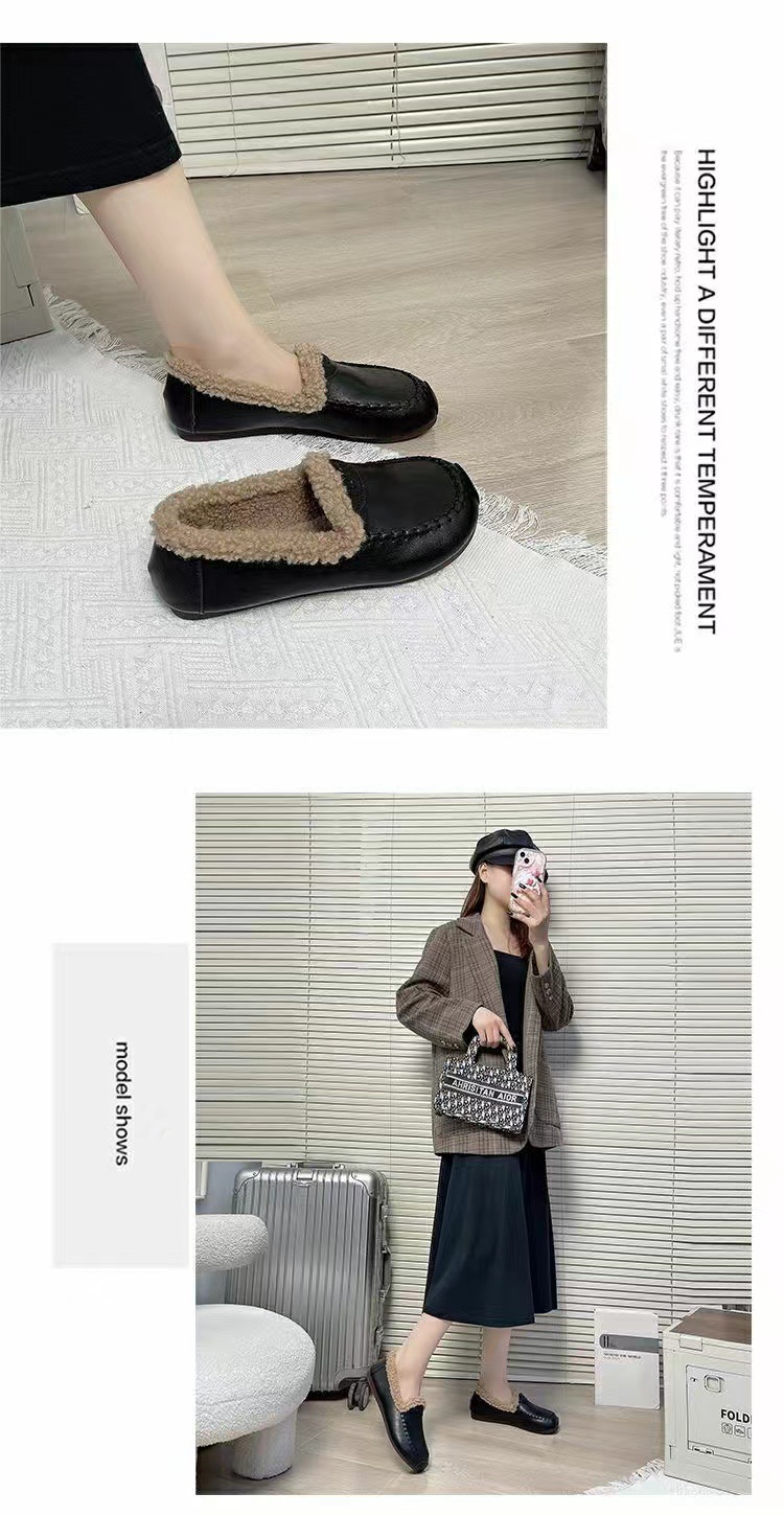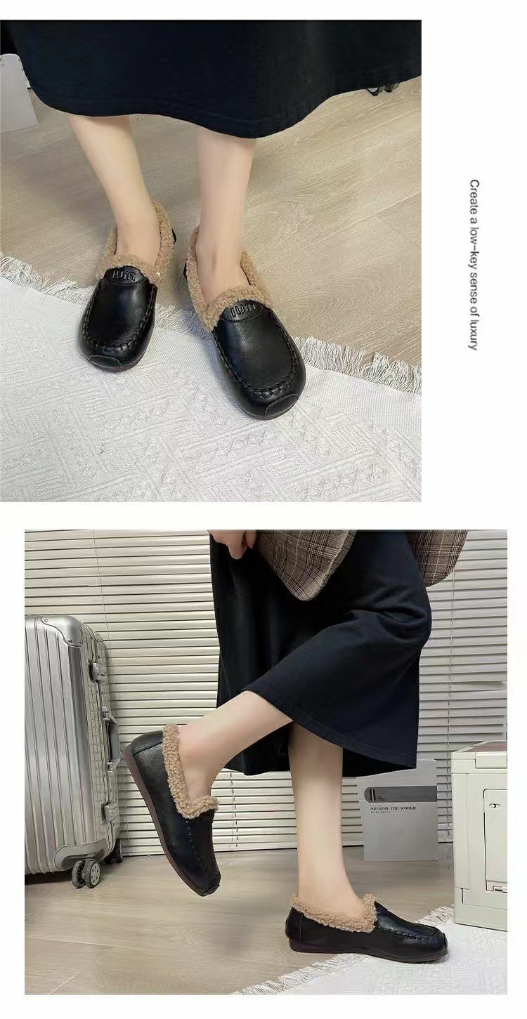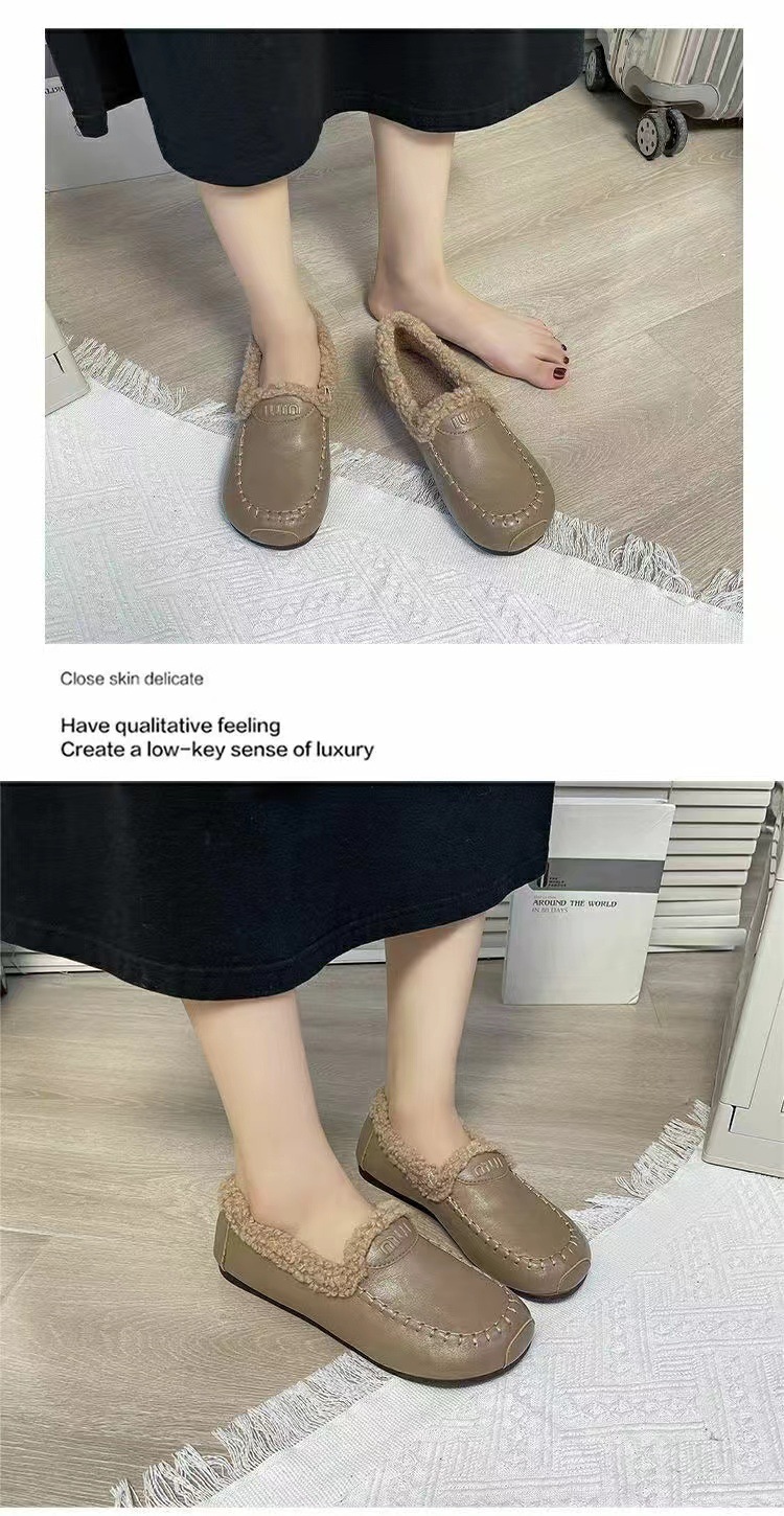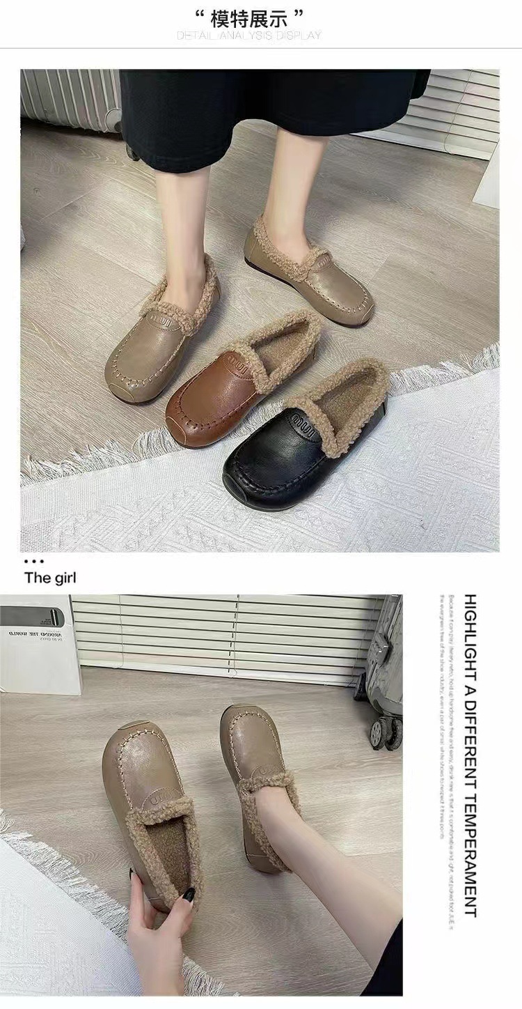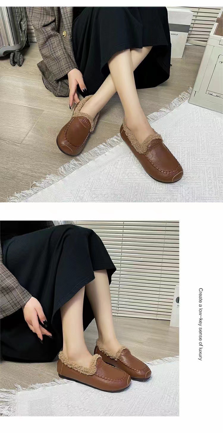 2025秋冬季新款复古舒适加绒豆豆鞋平底休闲单鞋韩版软底棉鞋