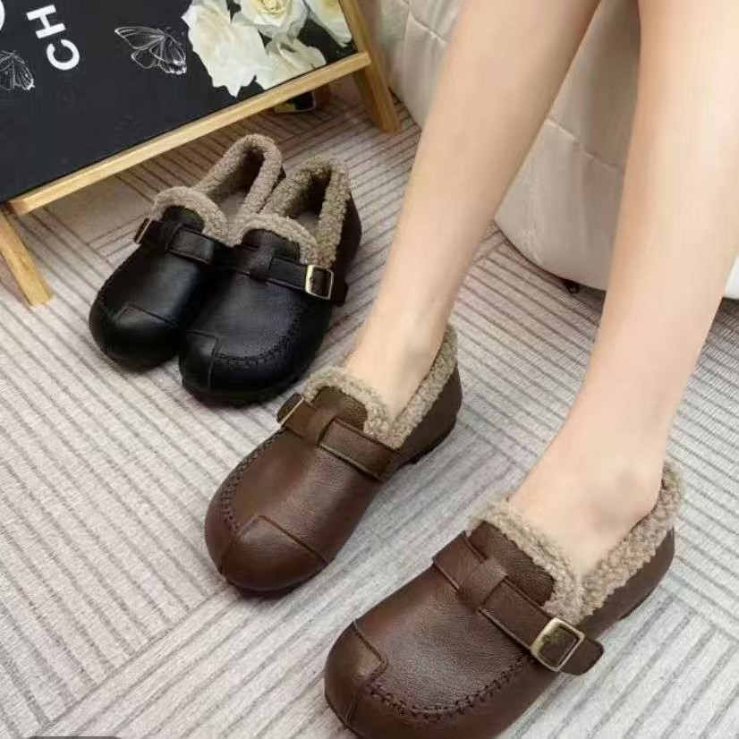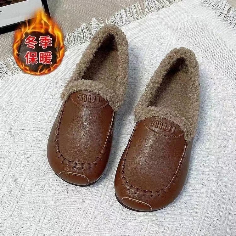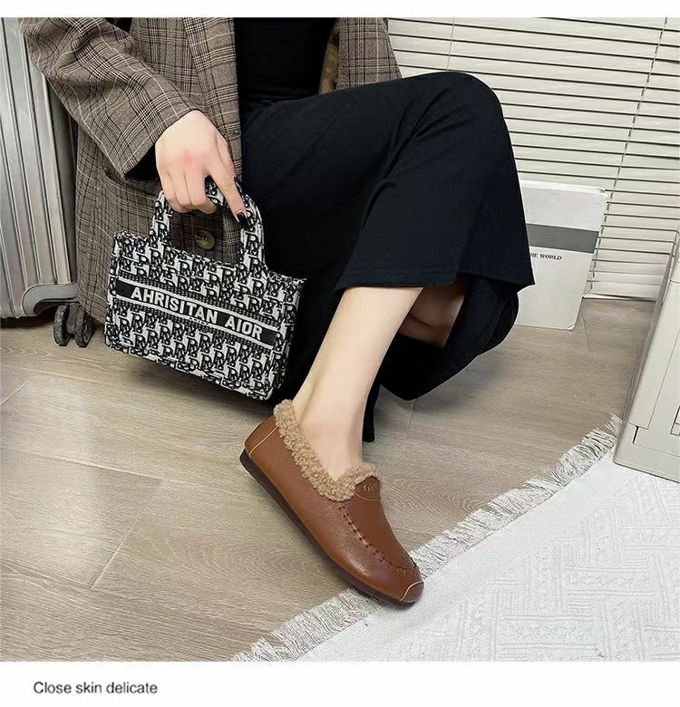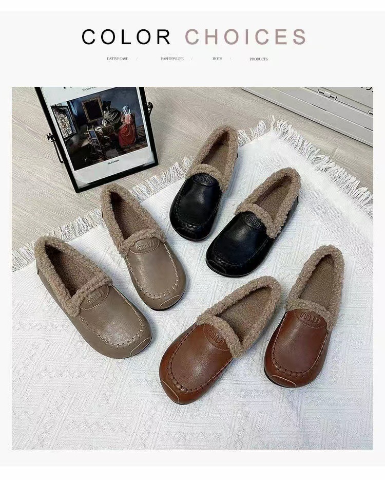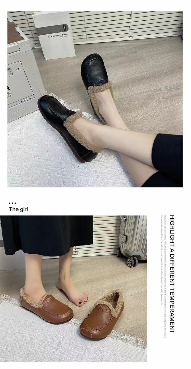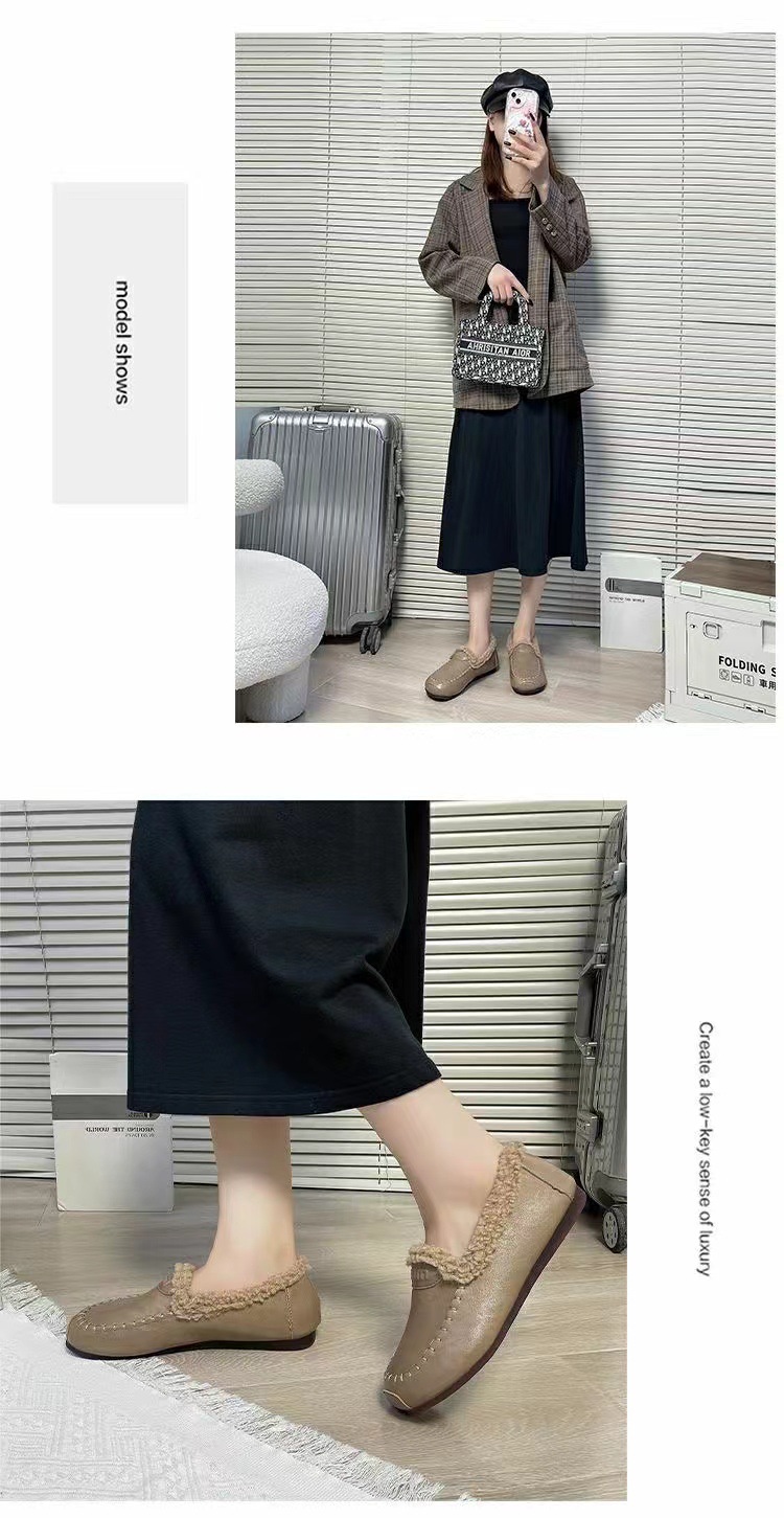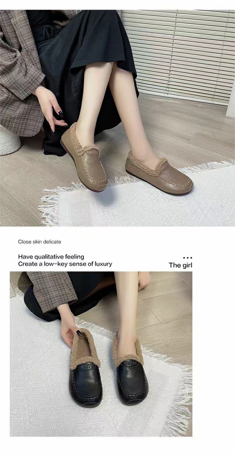 2025秋冬季新款复古舒适加绒豆豆鞋平底休闲单鞋韩版软底棉鞋