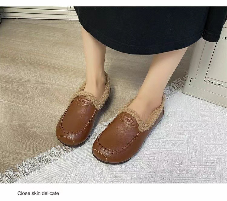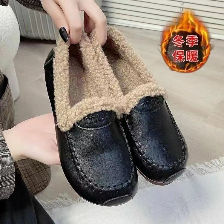 2025秋冬加厚棉鞋豆豆鞋妈妈鞋羊羔毛加绒百搭软底防滑保暖复古