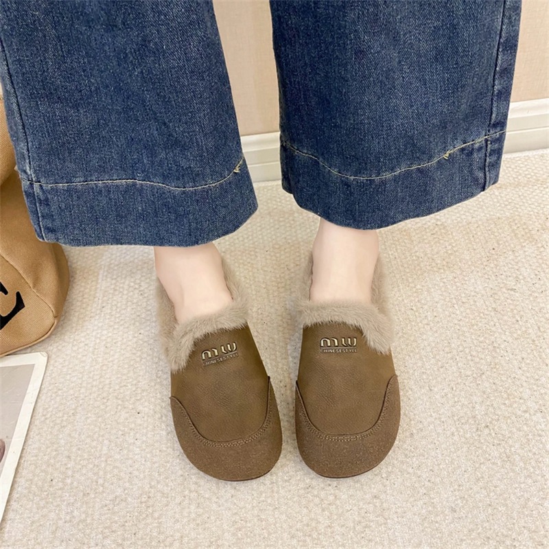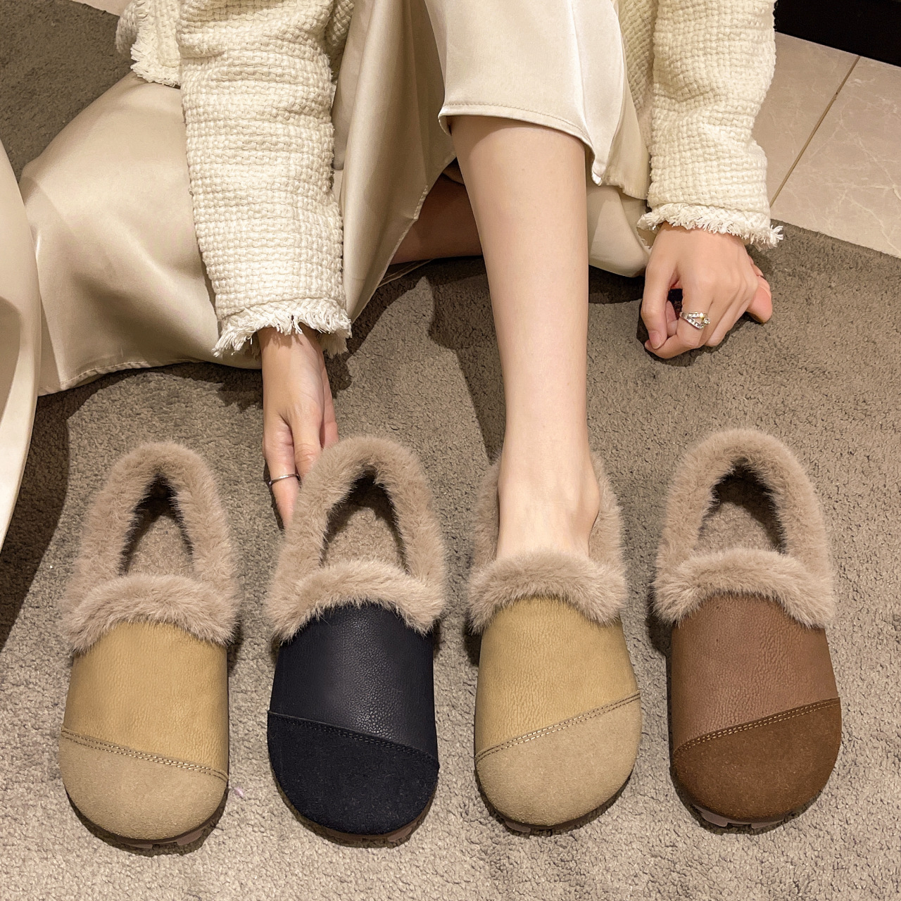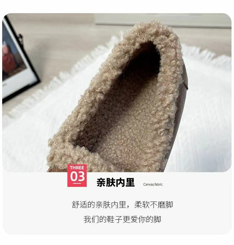 冬季复古加绒一脚蹬豆豆鞋外穿2025新款保暖软底毛毛勃肯鞋女棉鞋