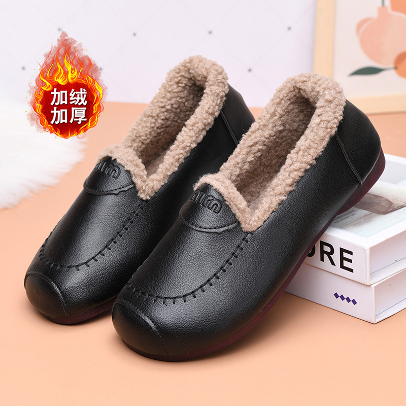 新款冬季毛绒中老年棉皮鞋平底大码中年加绒妈妈女士棉鞋一件代发