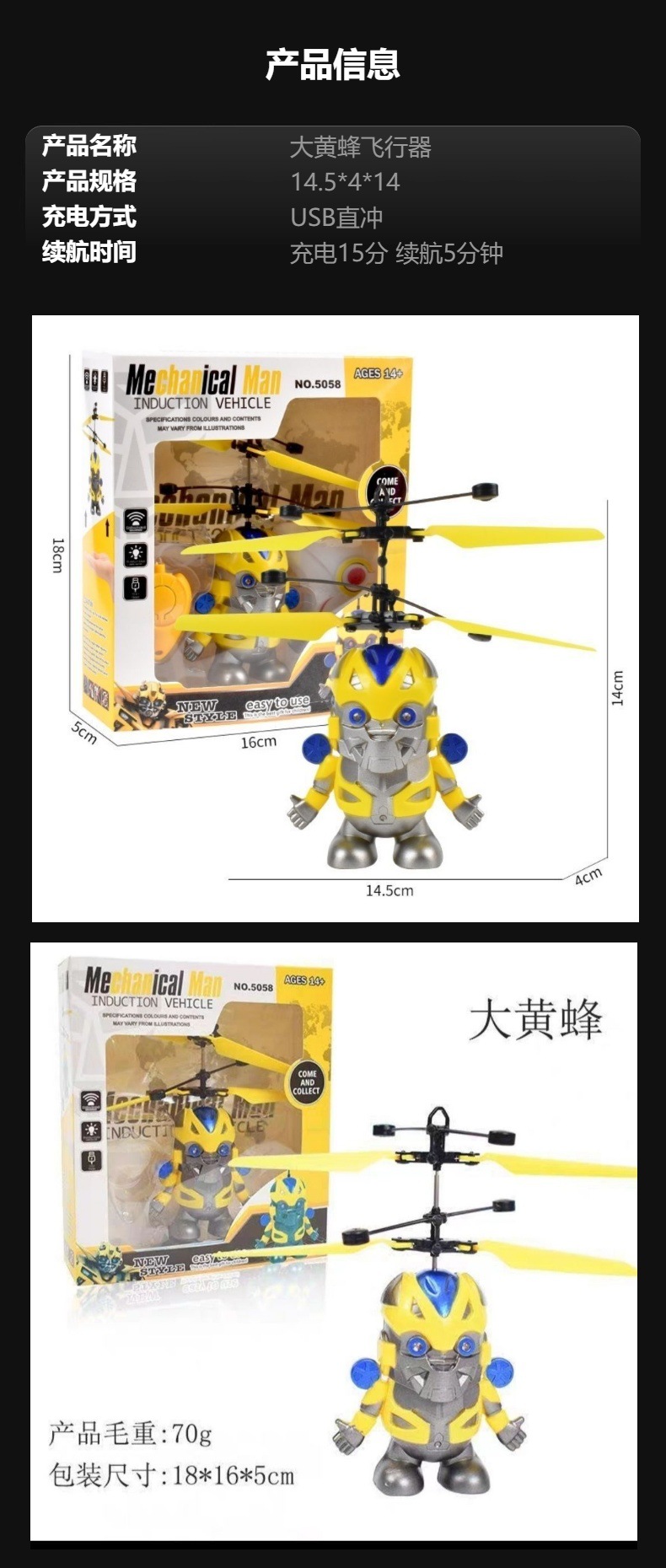 感应卡通直升飞机智能感应飞行器手势感应直升机儿童小学生玩具