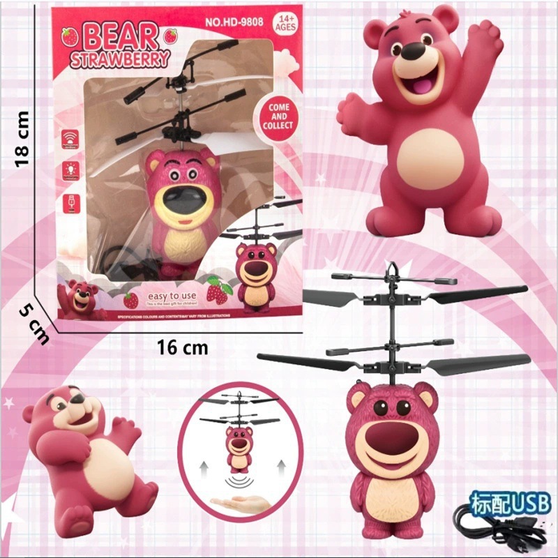 厂家直发感应飞机儿童电动玩具草莓熊感应飞行器男孩女孩直升机