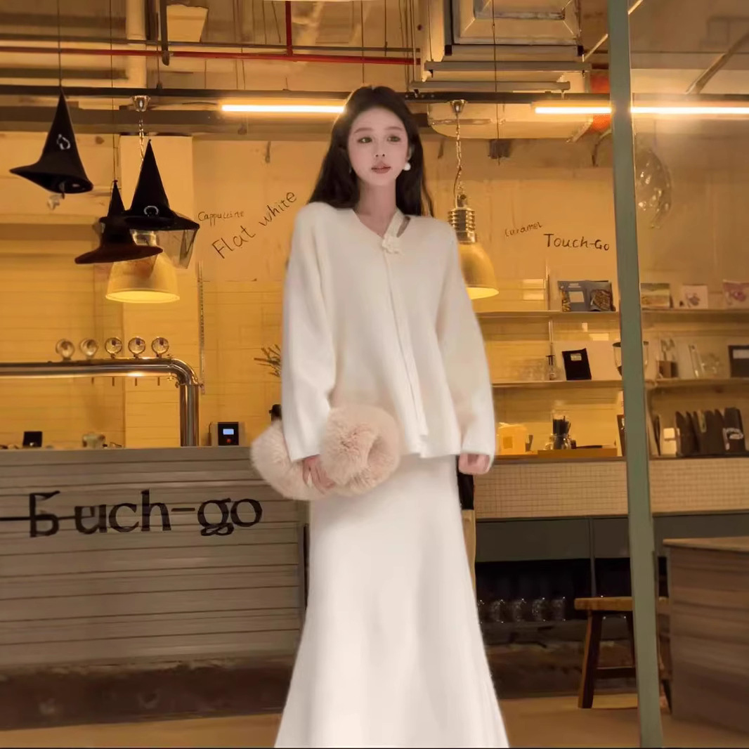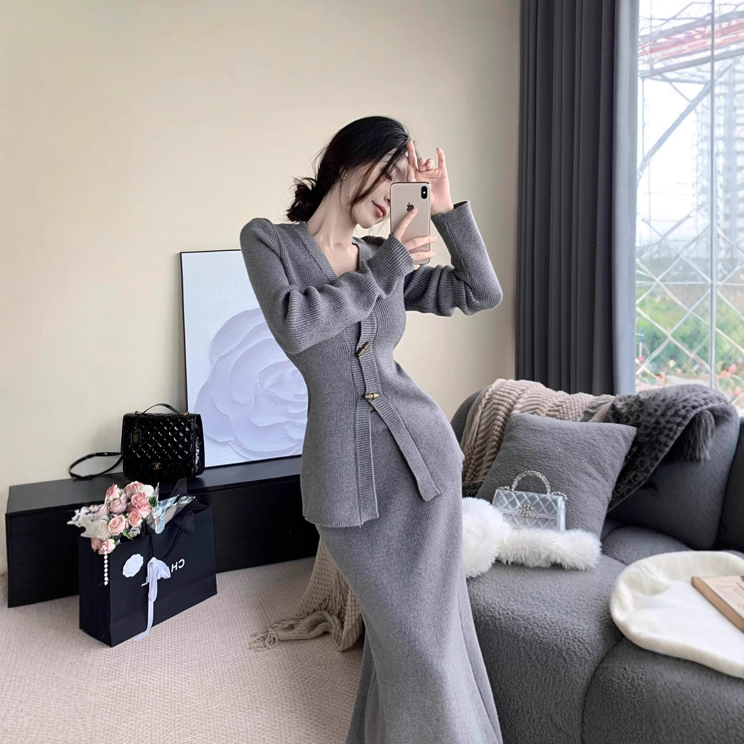 スーツ女性の秋 2025 新しい純粋な欲望スタイルカーディガンセータージャケットウエスト痩身ニットドレスヒップスカート
