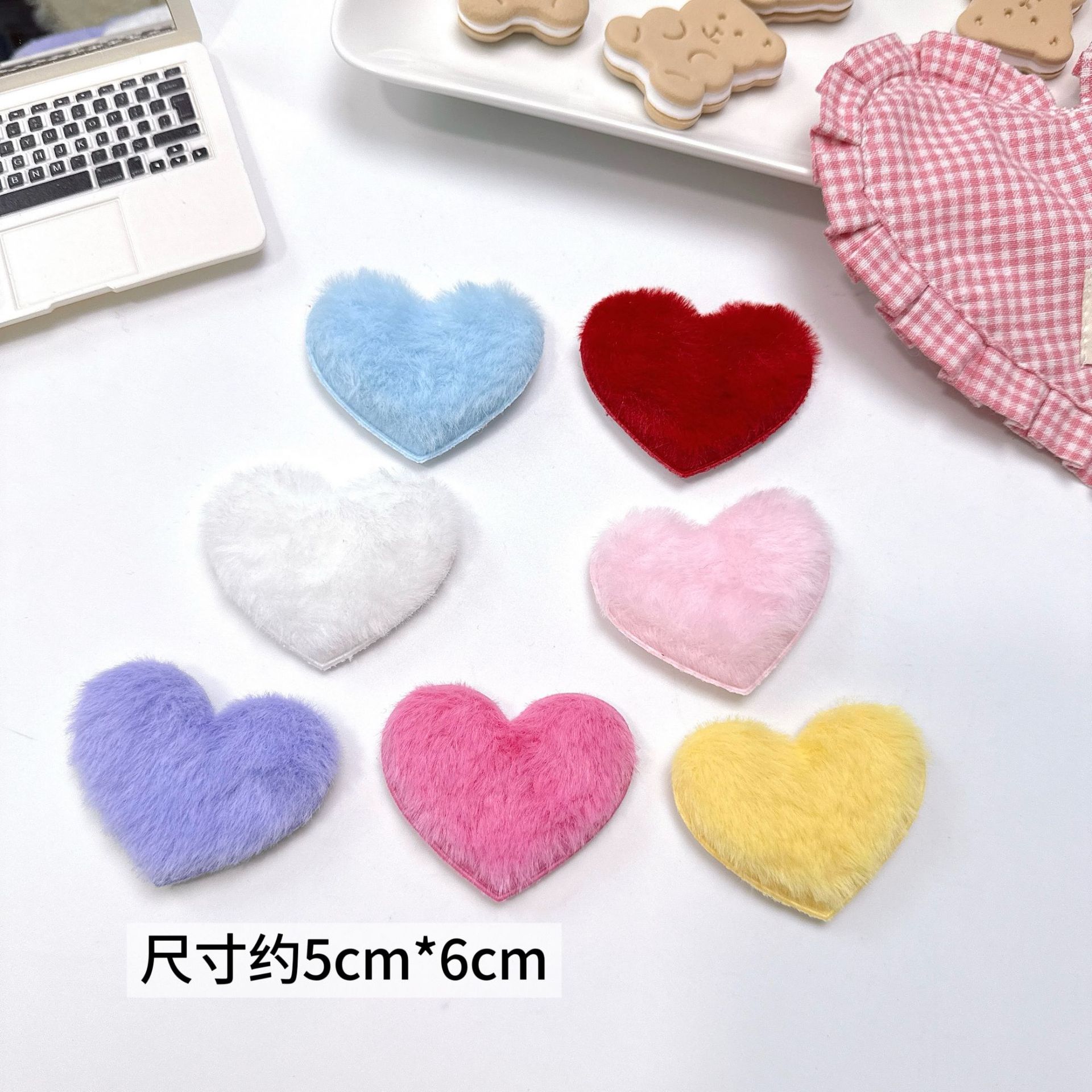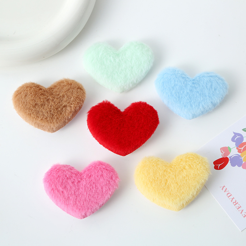 甜美6cm毛绒爱心饰品配件 diy手工发饰鞋帽材料心形毛绒辅料批发