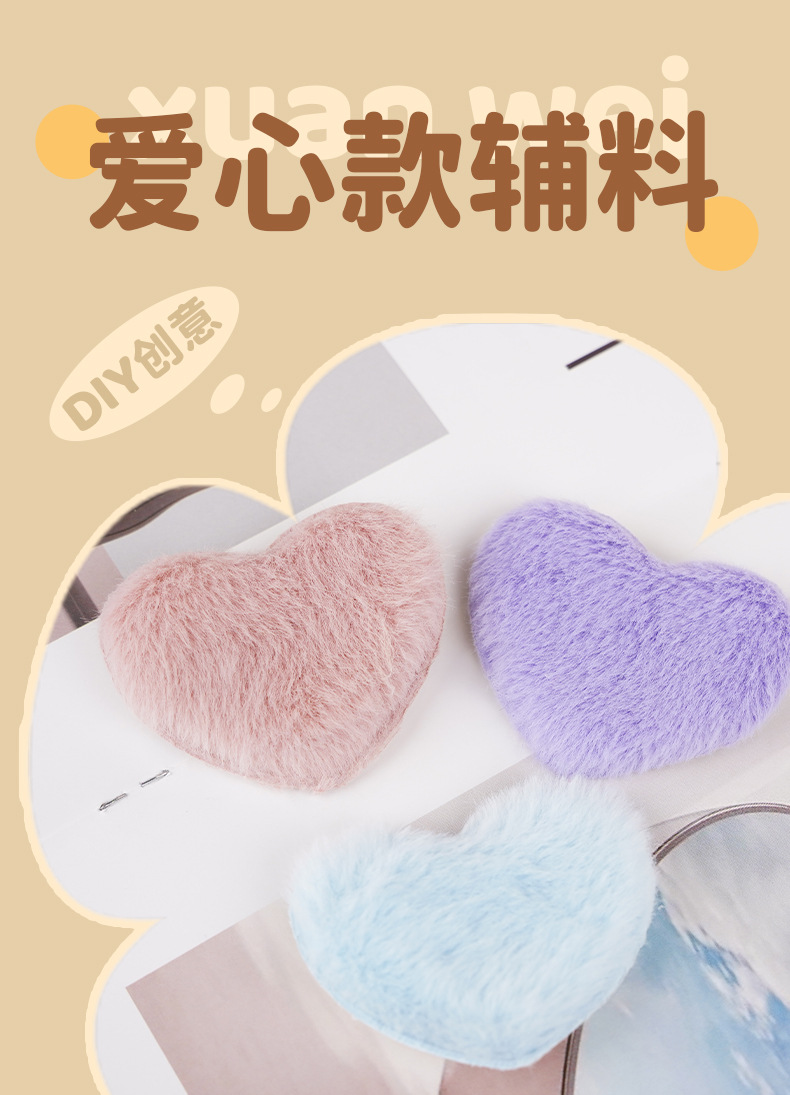 甜美毛绒爱心饰品配件diy可爱儿童发夹头饰服装鞋帽辅料批发