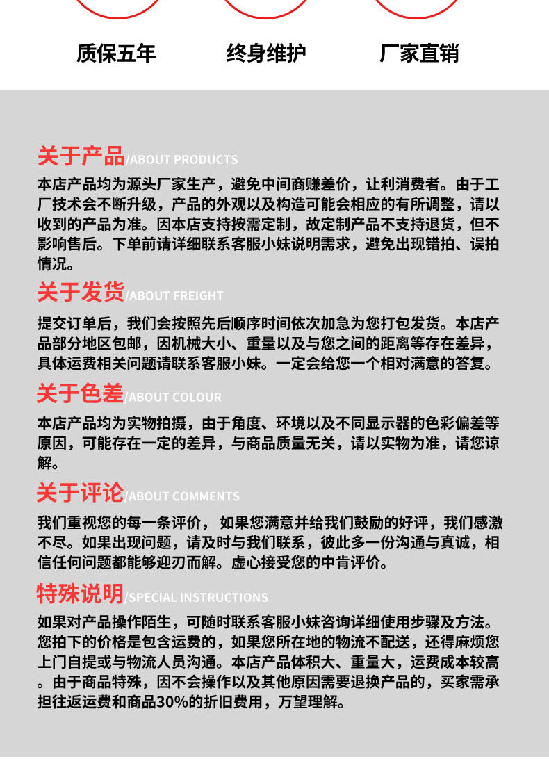 アフターサービス マシン全体には 3 年間の保証が付いています