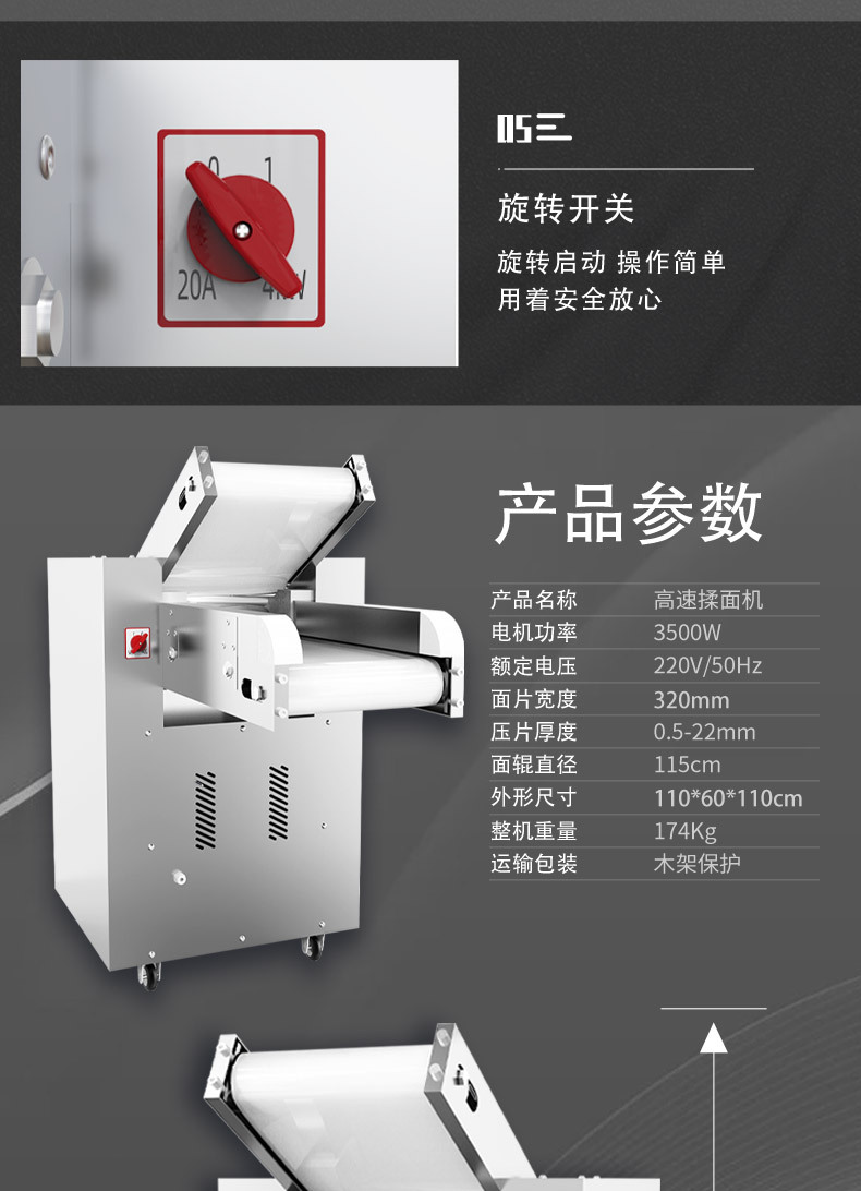 冠霆圧麺機商用ステンレス電動麺機新多機能全自動縦型切断面練り機
