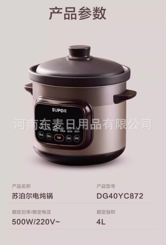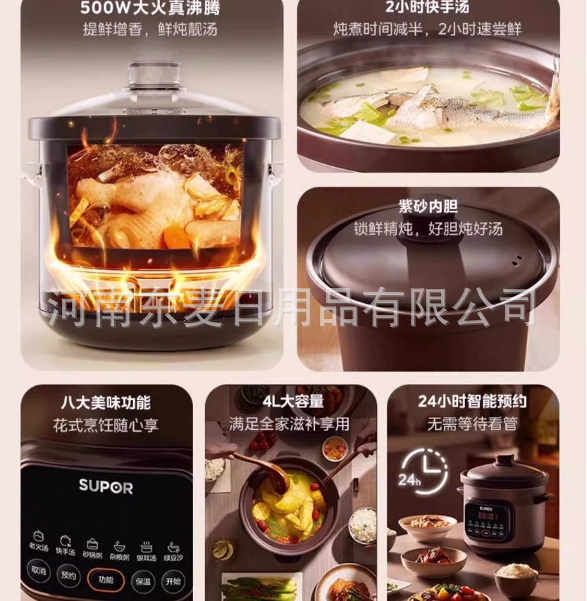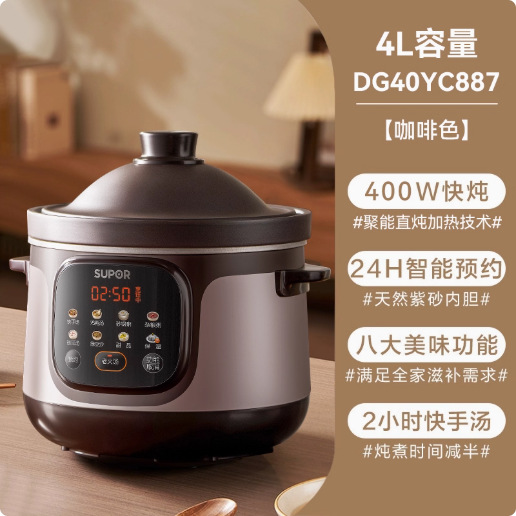 蘇泊爾電気シチュー鍋紫砂鍋4L大容量知能予約煮粥紫陶内胆DG40YC872