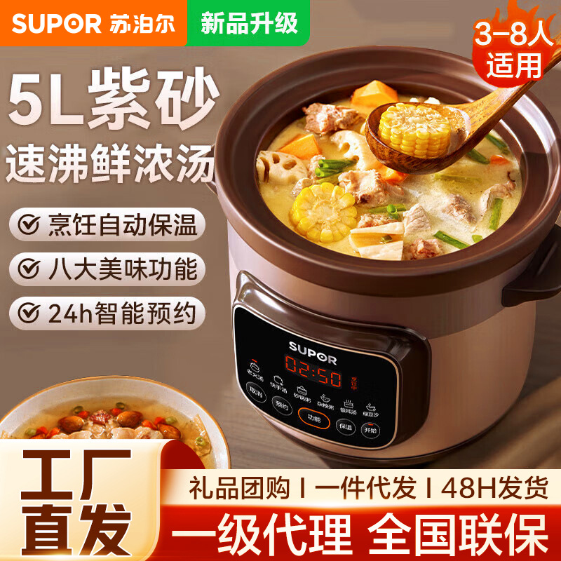 苏泊尔紫砂电炖锅家用5L大容量盅陶瓷全自动煲汤多功能DG50YC887