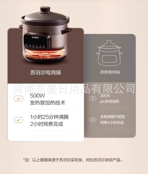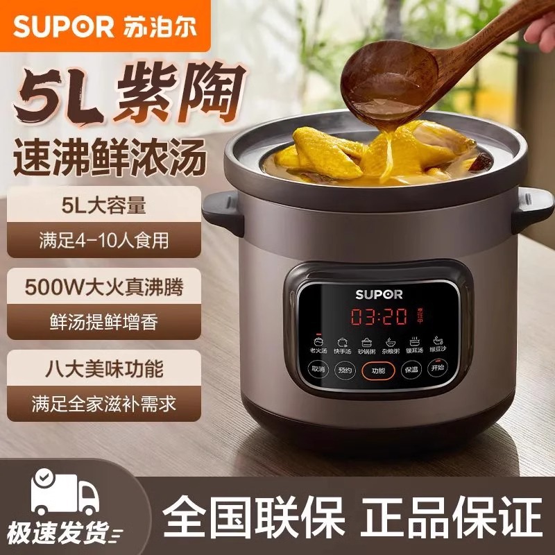 苏泊尔电炖锅家用紫陶瓷煲汤电砂锅5/6升熬煮粥养生炖锅自动智能