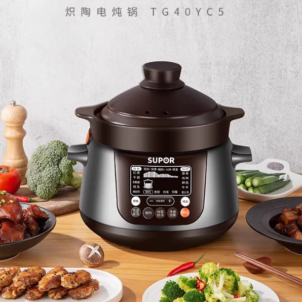 蘇泊爾tg40yc5電気シチュー鍋3-4リットル知能全自動湯沸かし器電気土鍋紫砂鍋養生粥家庭用