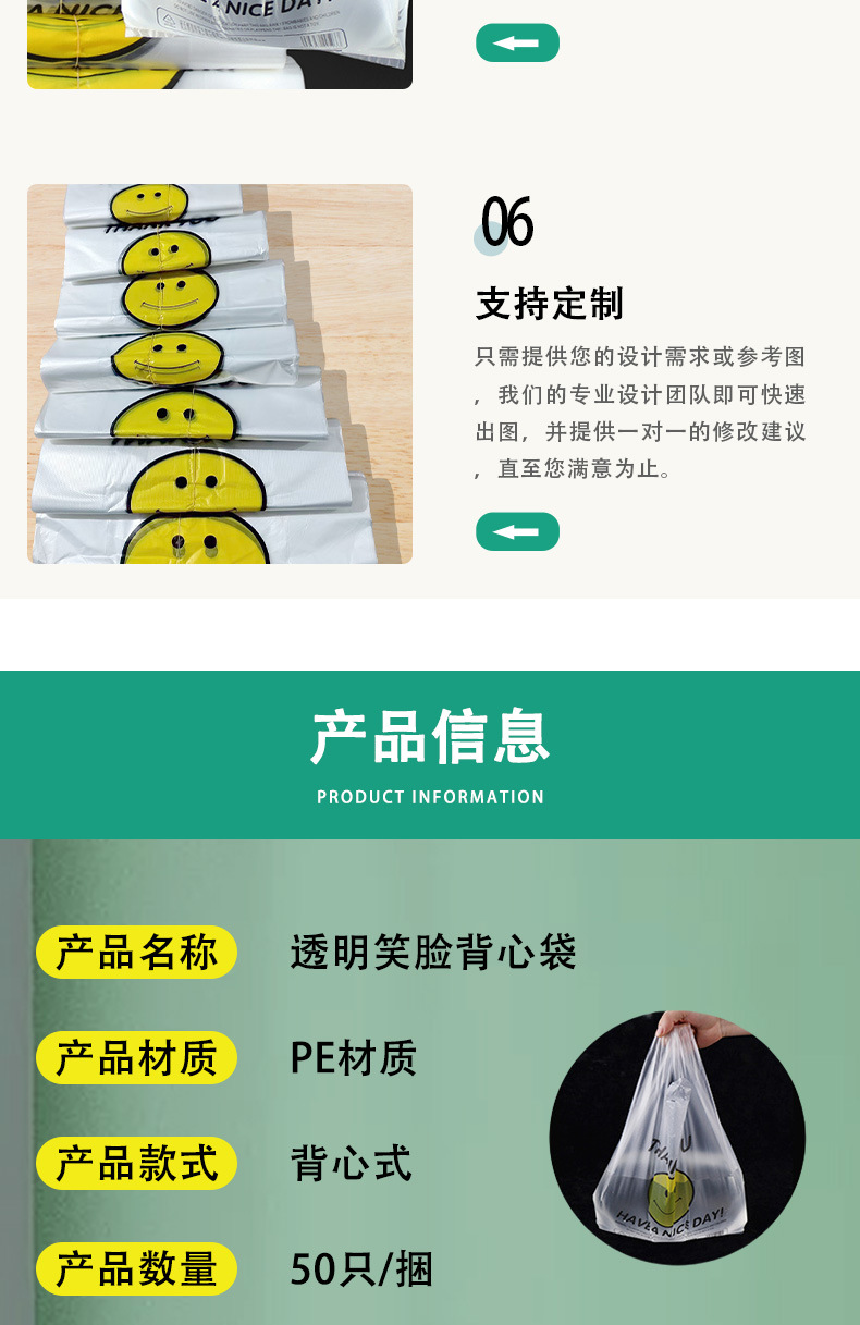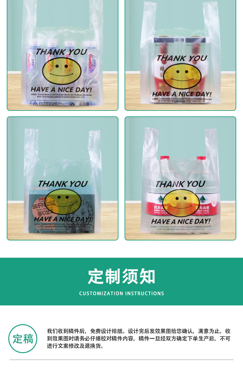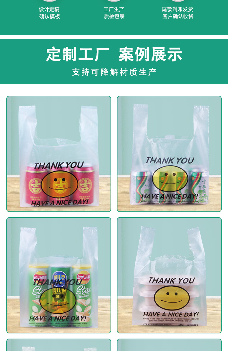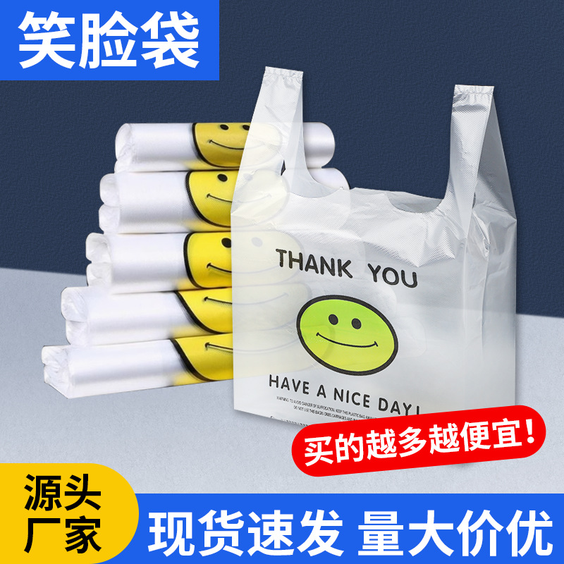 メーカー卸売り笑顔袋使い捨て透明ベストバッグ食品スーパープラスチックショッピングバッグ果物馬甲包装