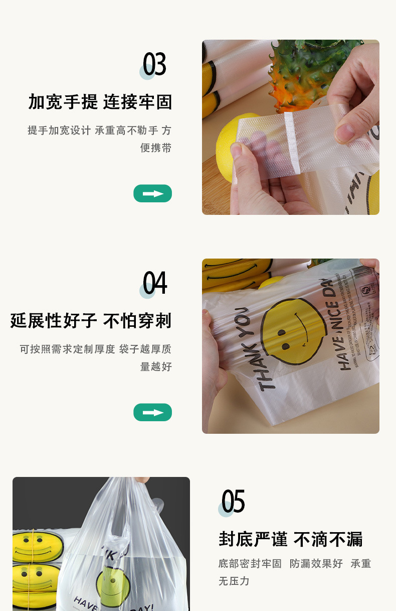 透明笑顔ビニール袋卸売りスーパーショッピング果物包装ベストバッグ携帯包装袋便利袋