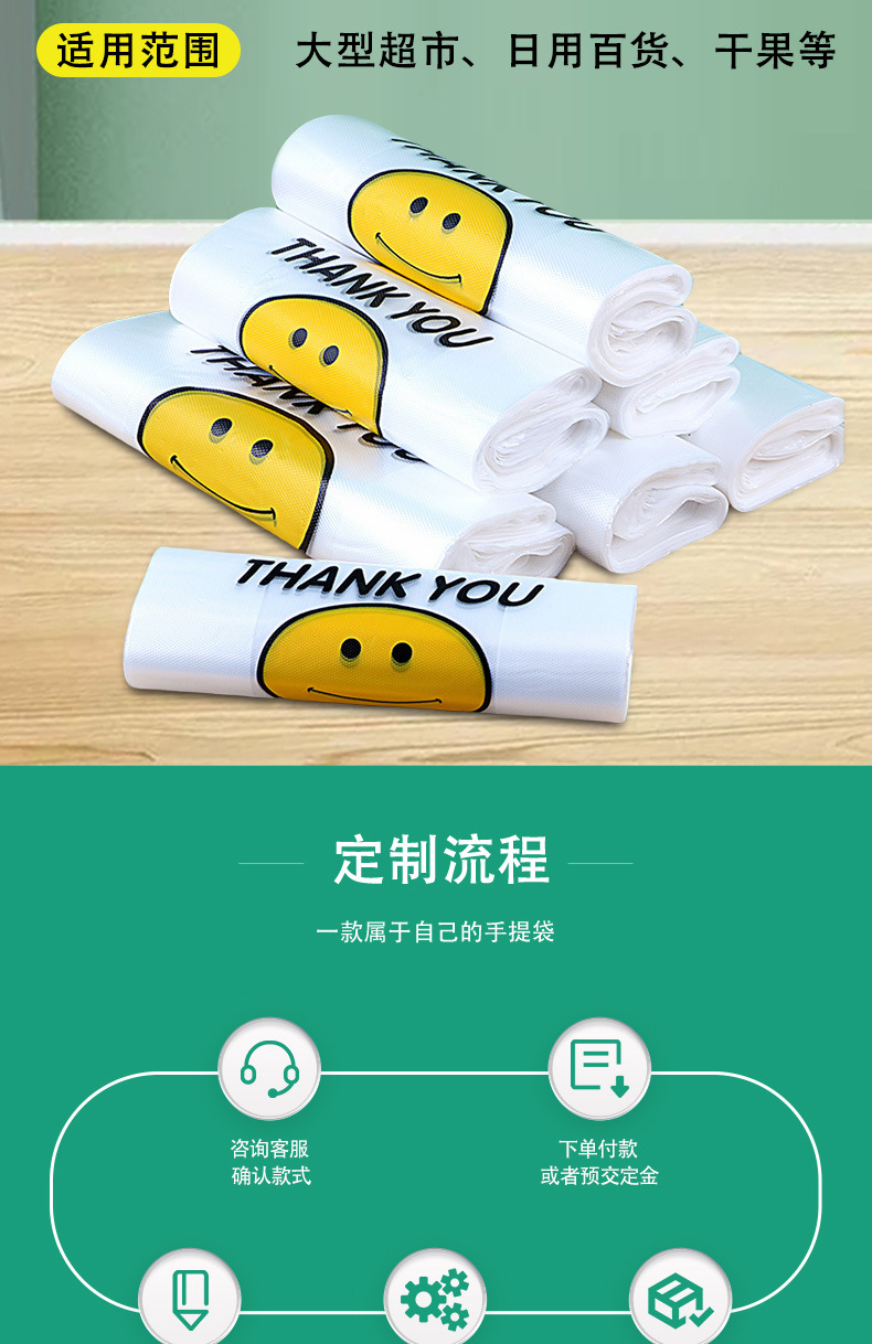ビニール袋卸売りベストバッグ使い捨てスーパー便利袋果物出前バッグ透明笑顔バッグ袋