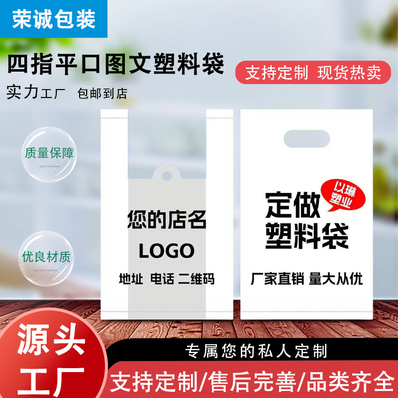 コンビニエンスバッグ、ポータブルプラスチックプリントバッグ、テイクアウト食品包装袋、スーパーマーケットのフルーツバッグ、4本指フラットバッグ