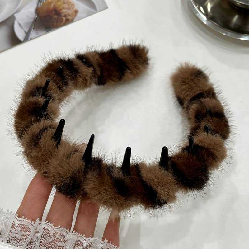 韓国のヒョウ柄のカチューシャの女性のぬいぐるみのカチューシャのネットの赤い冬はウサギの毛のようです。