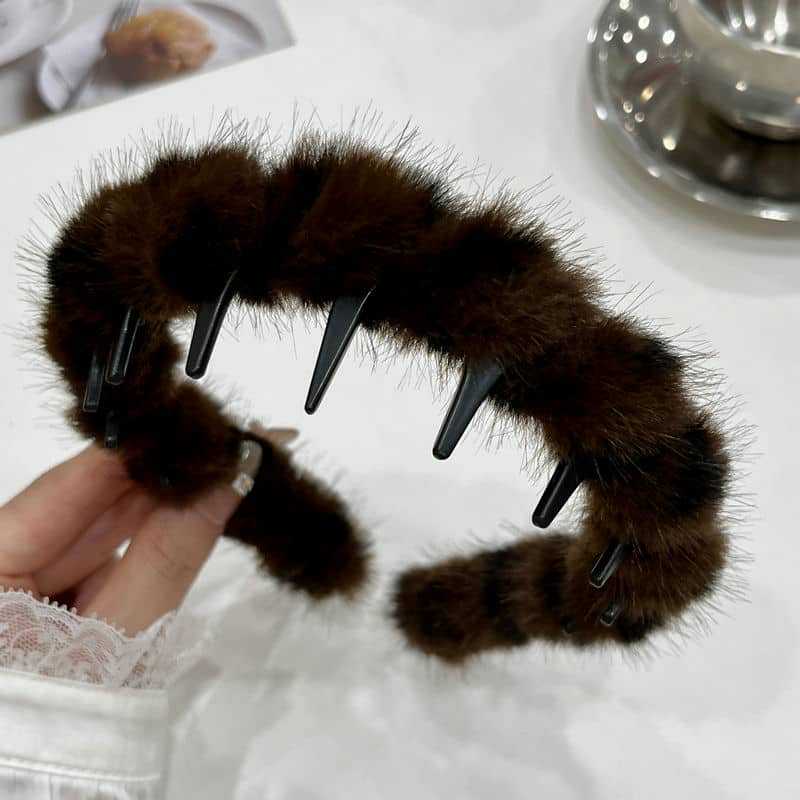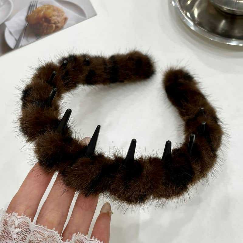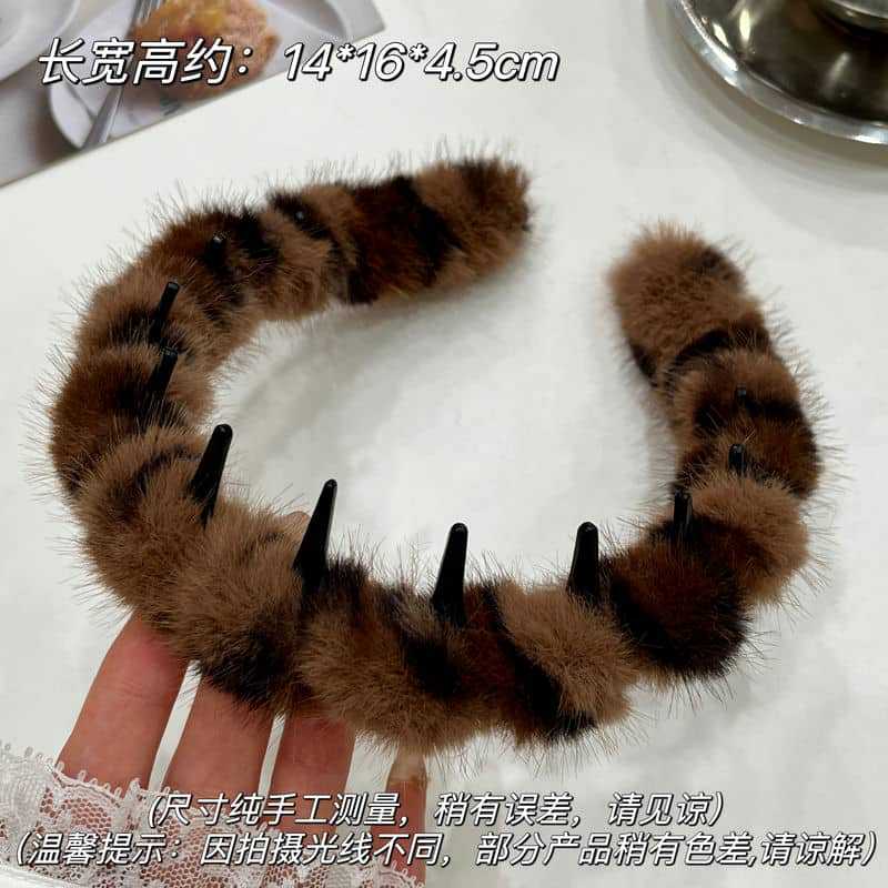 2025新款秋冬复古豹纹带齿毛绒发箍女防滑洗脸发卡头箍高颅顶头饰
