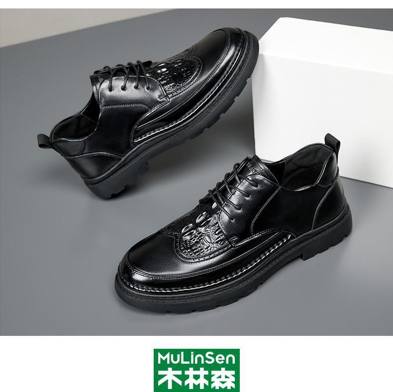 木林森革靴男靴春秋タイプカジュアル男性ビジネス正装ダービーシューズ布ロック革靴男新郎靴