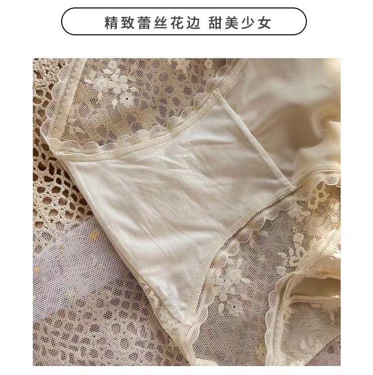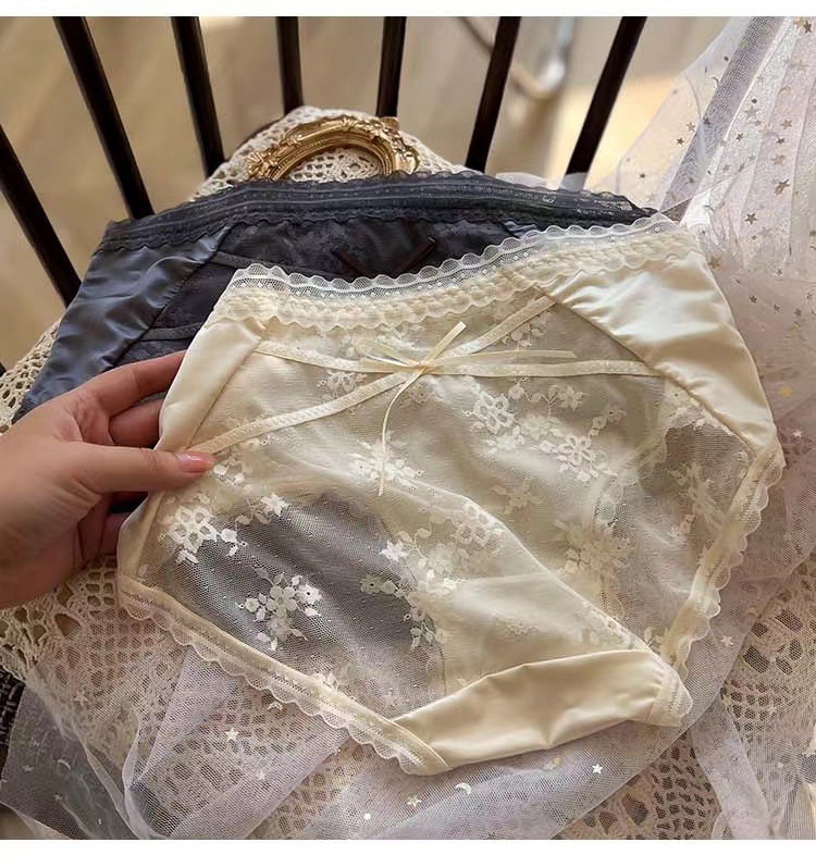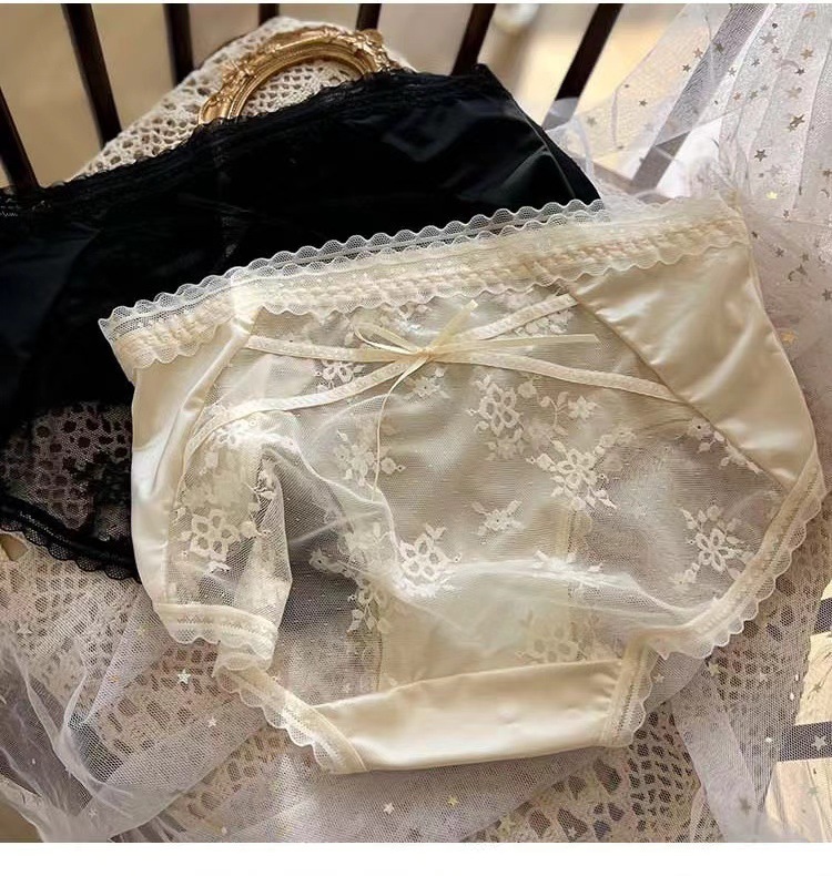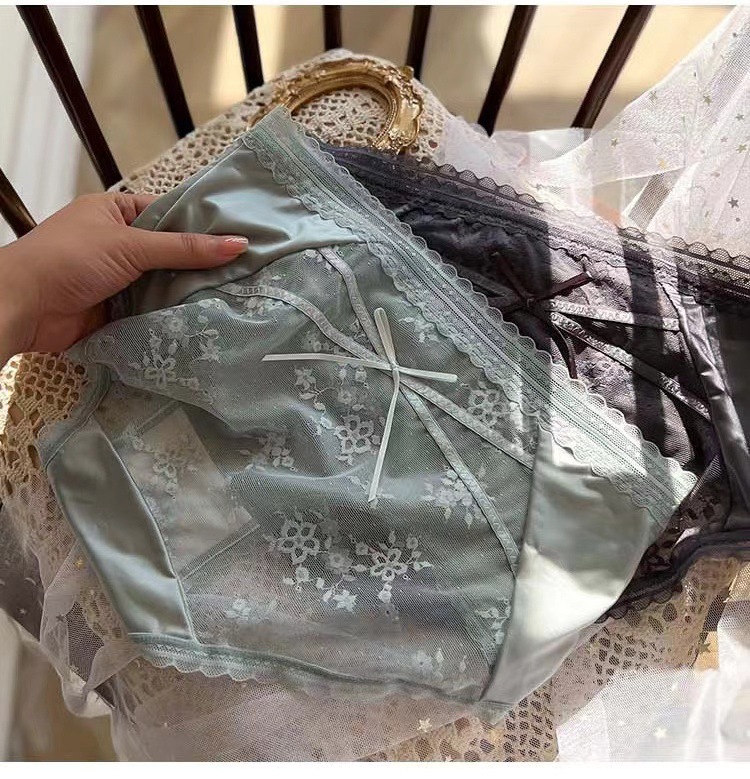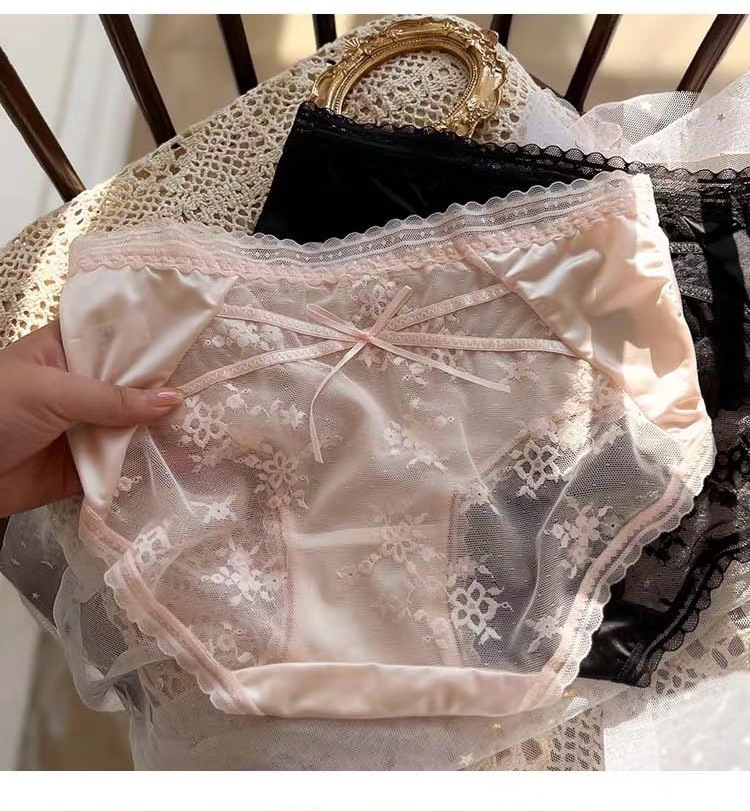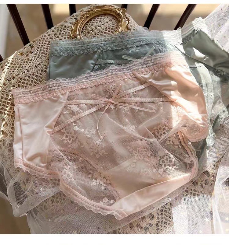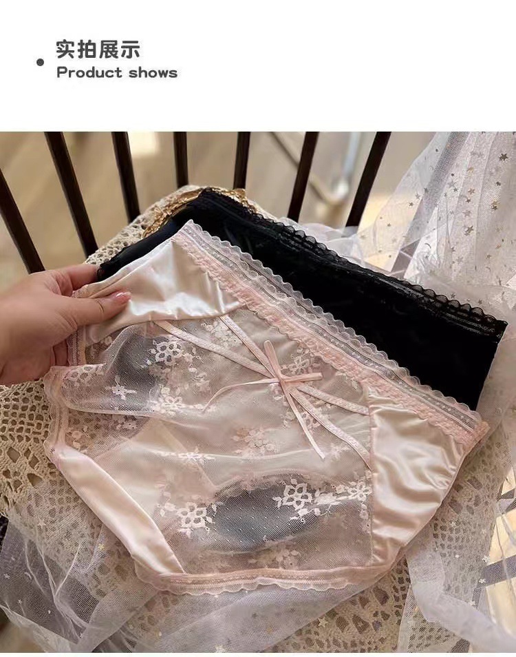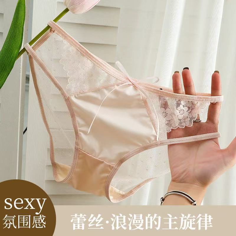 蕾丝内裤刺绣细带镂空网纱桑蚕丝底裆女士三角裤透气抗菌少女款