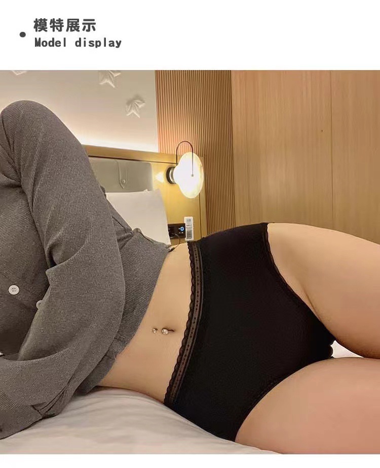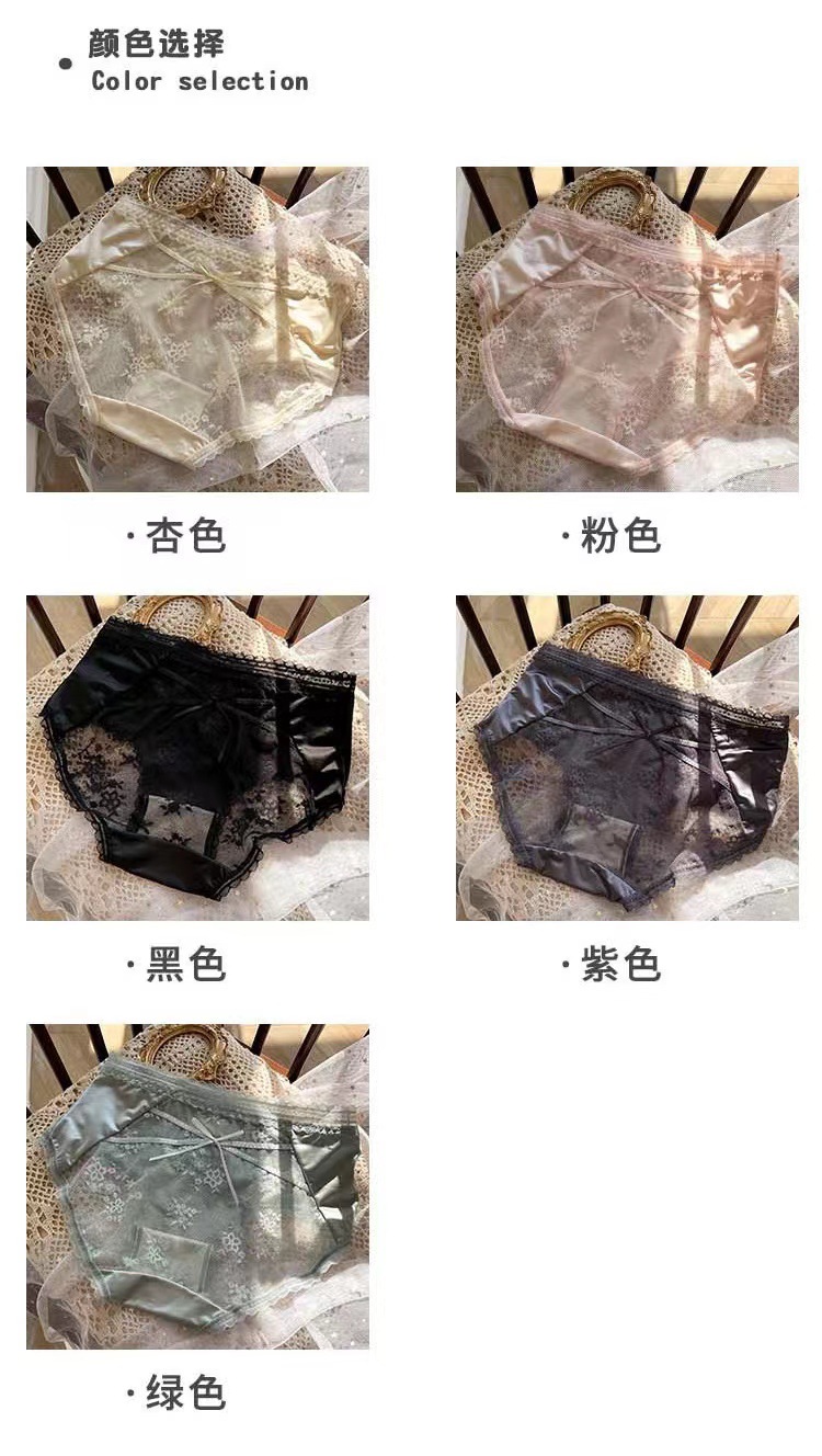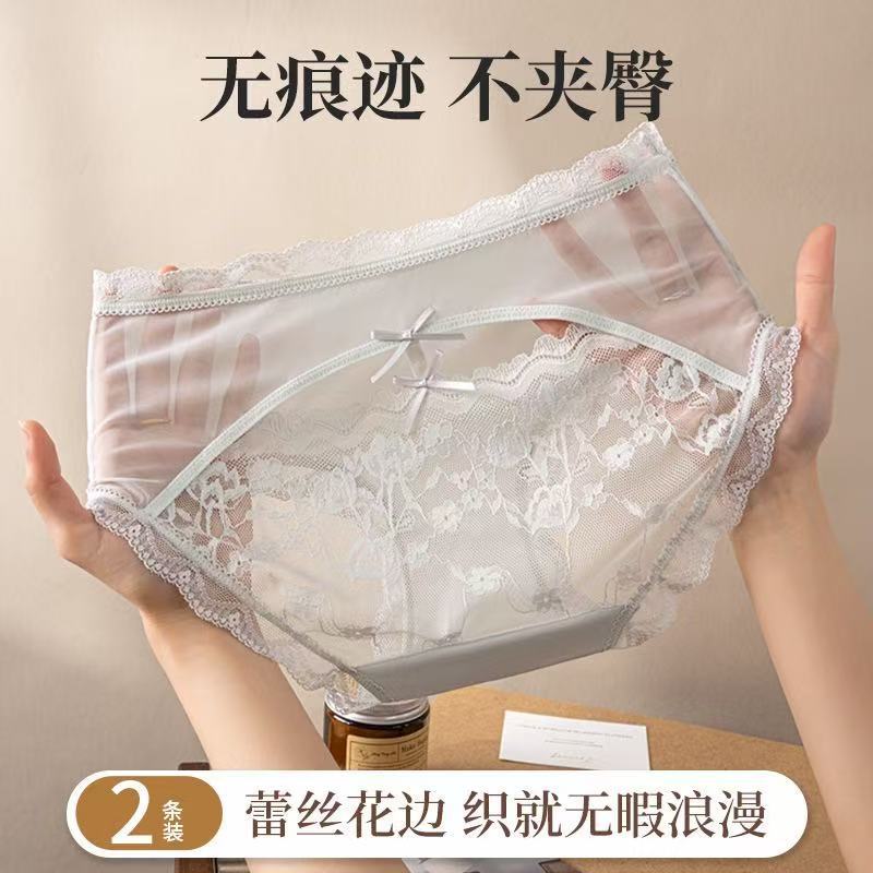 クロスボーダー・アイスシルク・ガールズスタイル・ミッドウエスト・シームレス・ピュア・レース・パンティー・純綿・抗菌・大きいサイズ・セクシー・三角パンツ