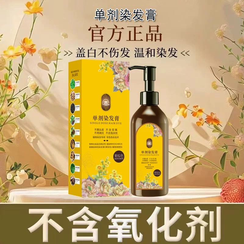 花香单剂染发剂单管植物无刺激气味盖白发不含双氧不伤发家用染膏