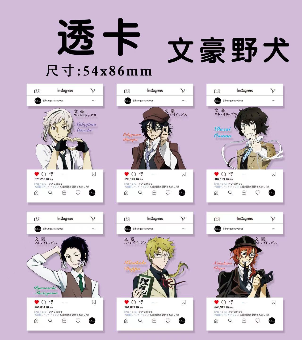 新作 3inch PVC 透明カード タイム文豪ストレイドッグス バレーボール コ・メン 高颜值 美しい透明カード 1パック6枚入り ギフト