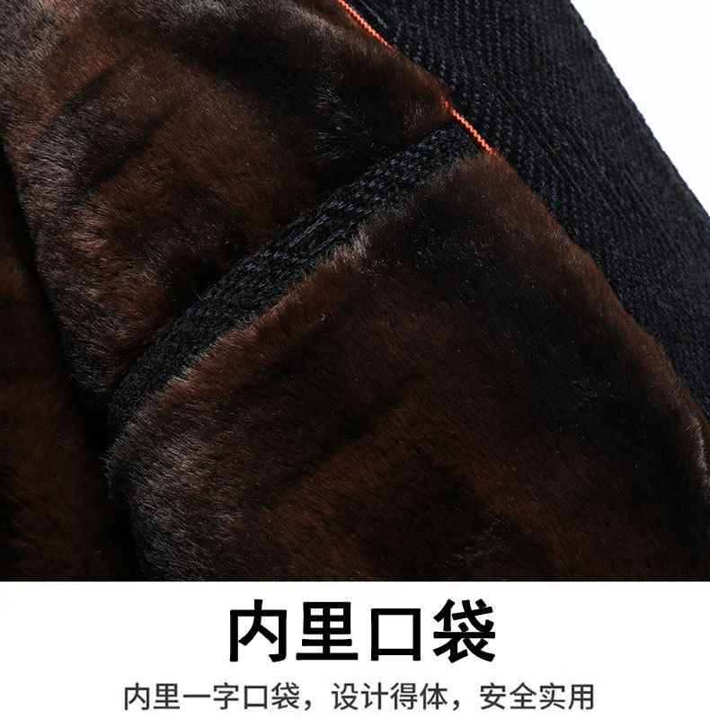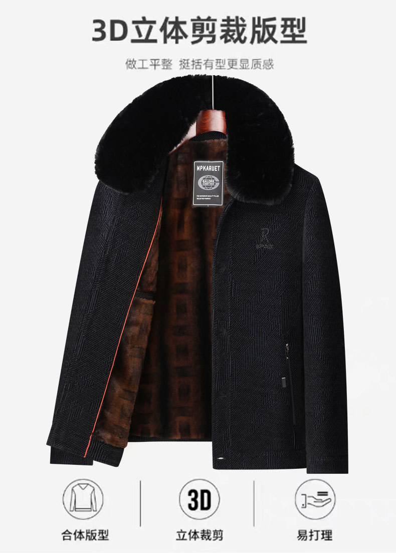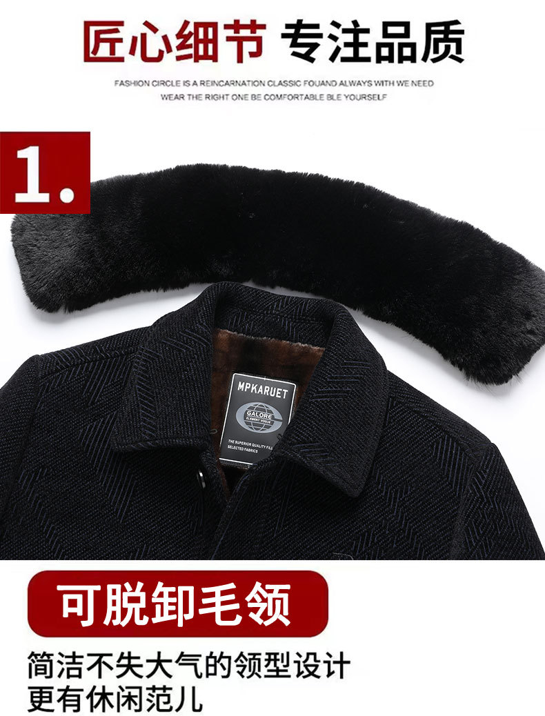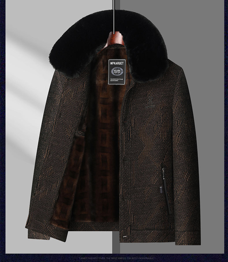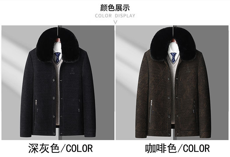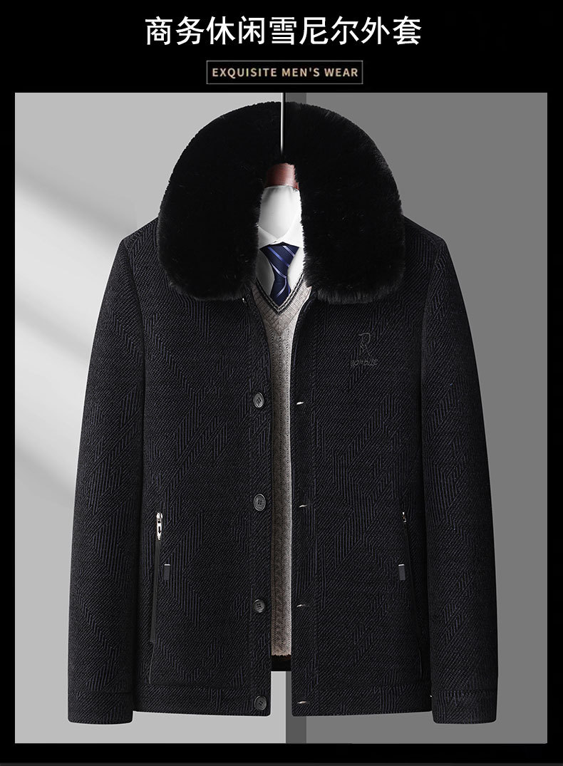 中年男性のベルベットは綿入れのコートを厚くして、お父さんは冬服のシェニール毛襟綿入れの中高年綿服を着ています