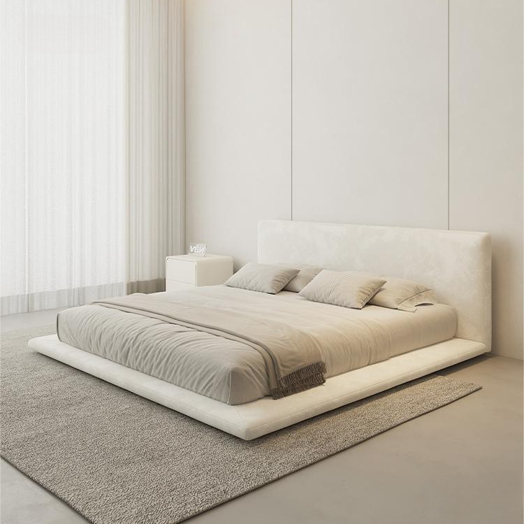 榻榻米落地床现代简约双人奶油系白色诧寂风轻奢床网红卧室极简床