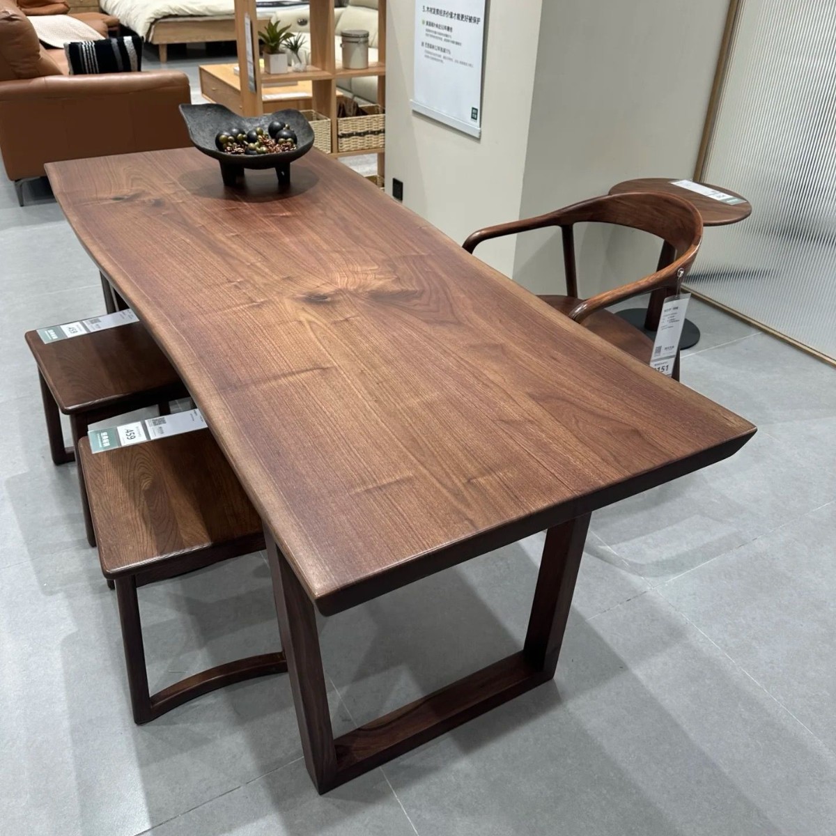 北美黑胡桃木大板桌实木餐桌侘寂风原木茶桌书桌去客厅化茶桌茶台