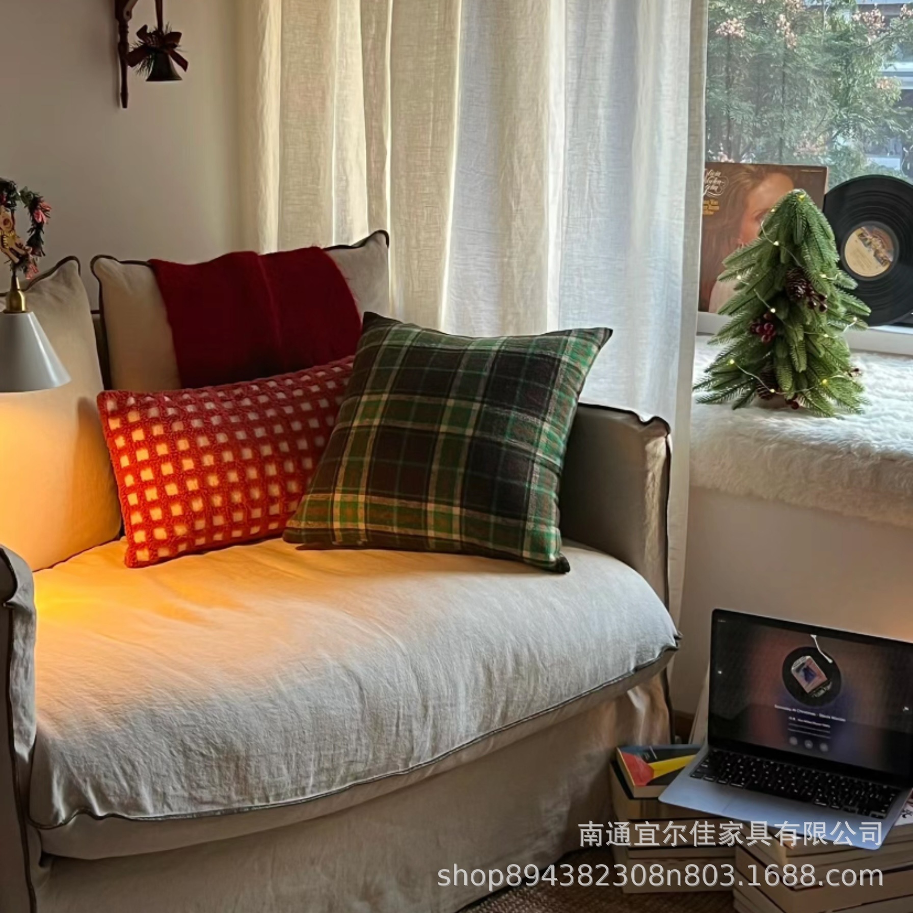 寂風豆腐ブロックリネンソファ北欧リビング直列コーナー綿麻モジュールセット羽毛ソファ