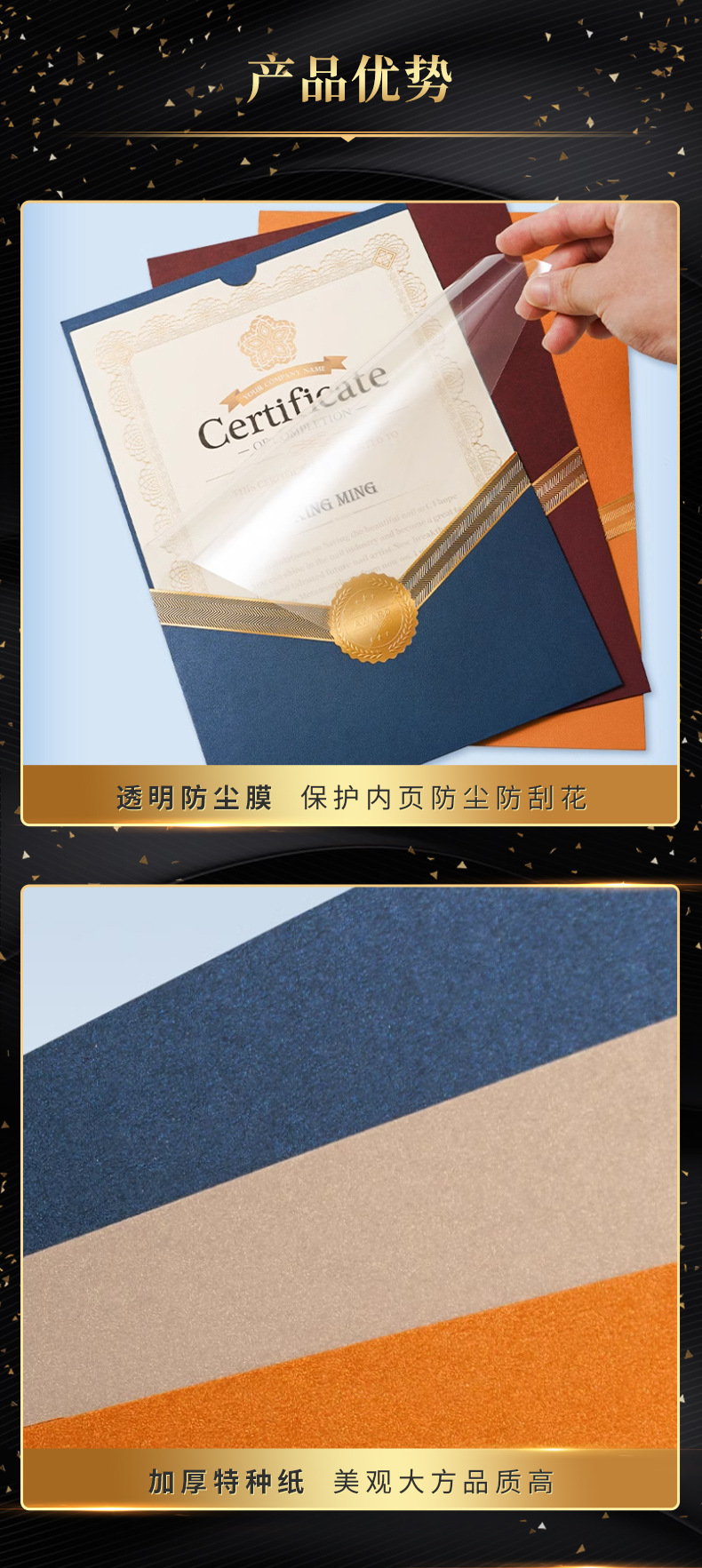 领风荣誉证书撑背证书烫金封面定制批发证书外壳定做装帧纸封皮