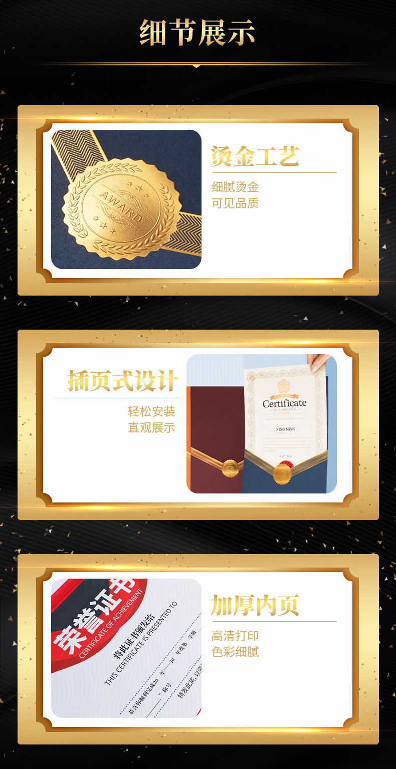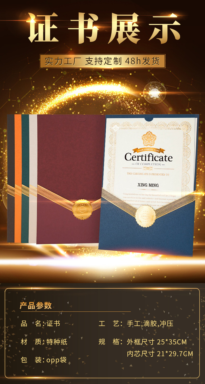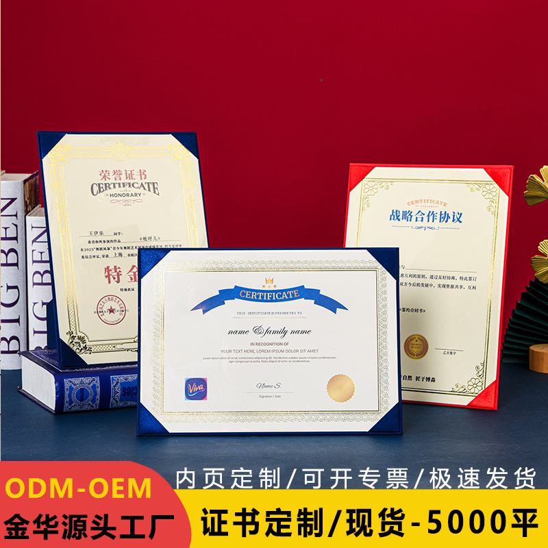 名誉証明書カスタム箔押し二重テープ内ページ賞状紙内芯カスタマイズ可能企業ロゴ証明書内ページcx