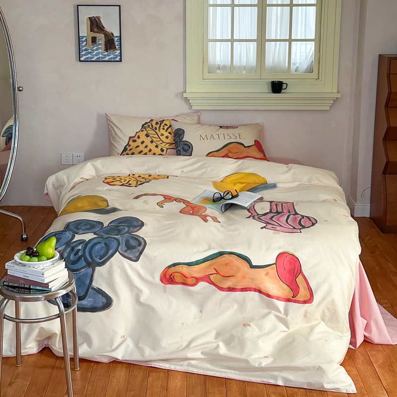 レトロな油絵風文芸ベッド用品4点セット綿綿綿綿綿功サテンシーツベッドカバー布団カバーベッド用品