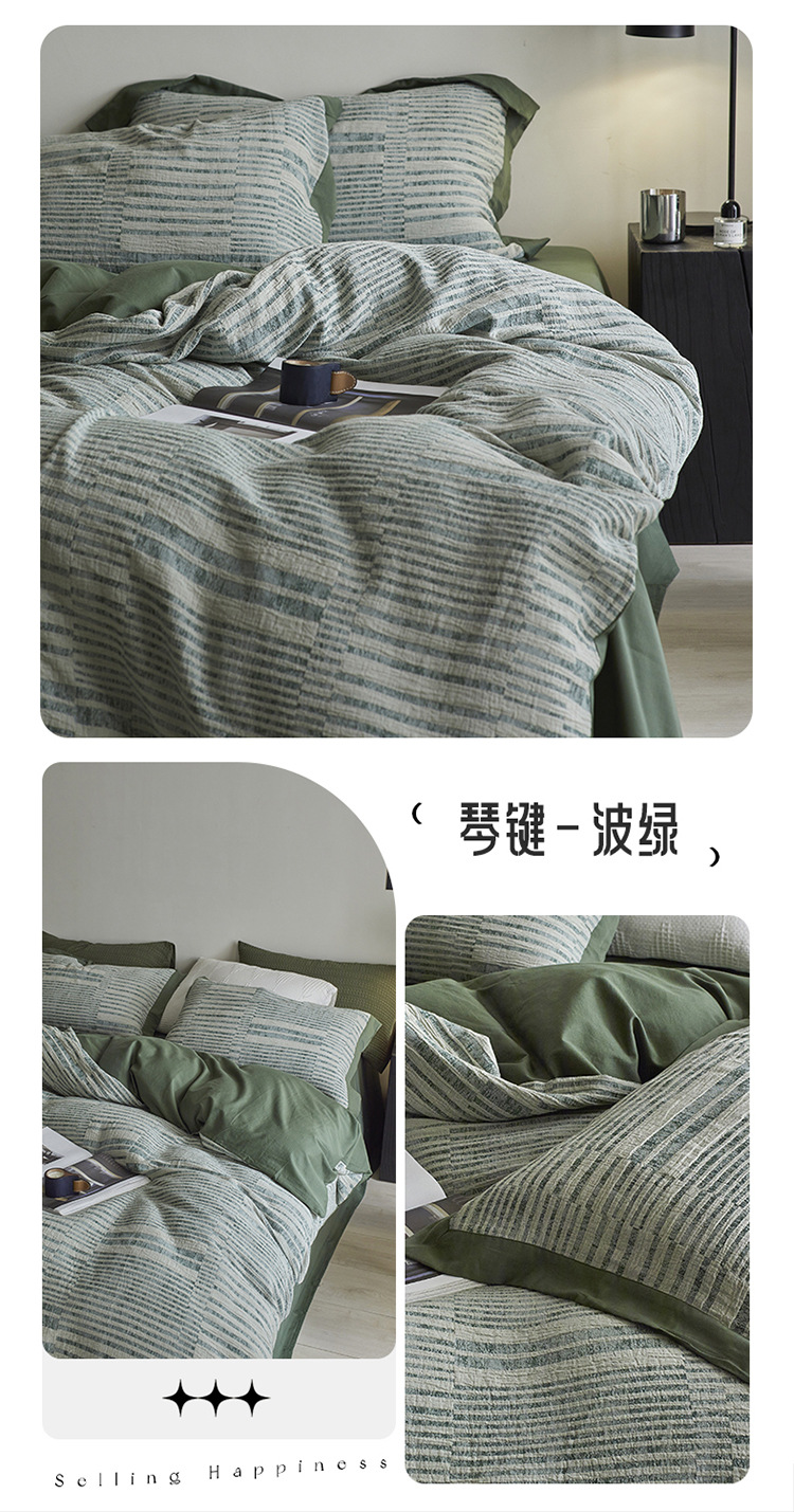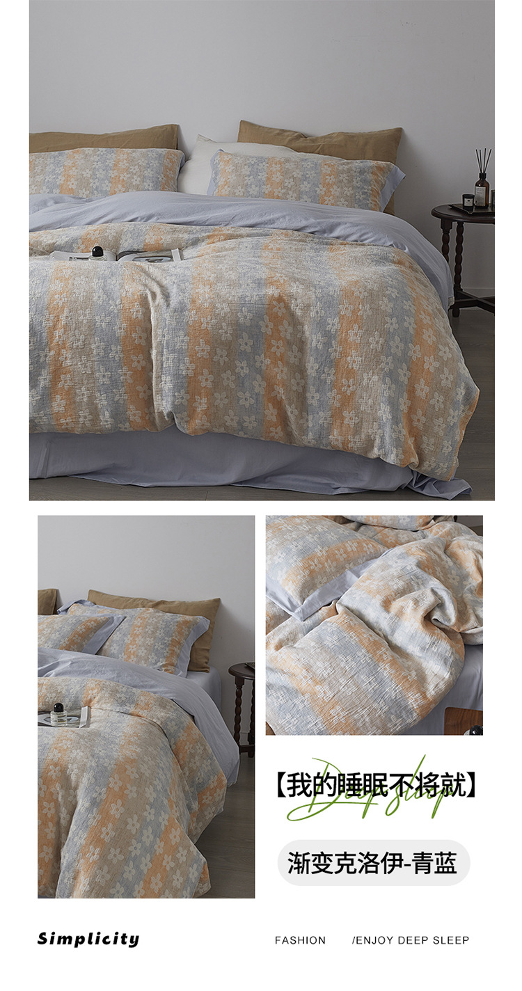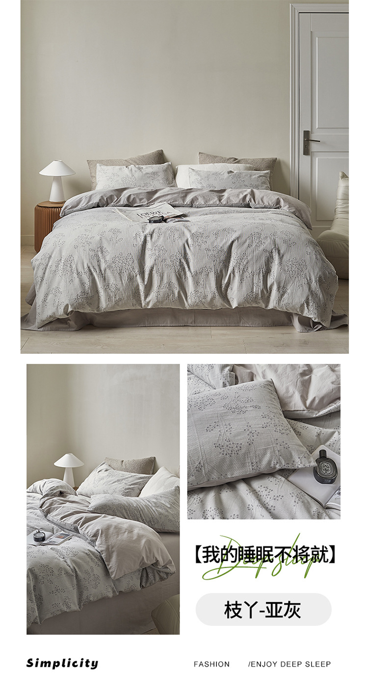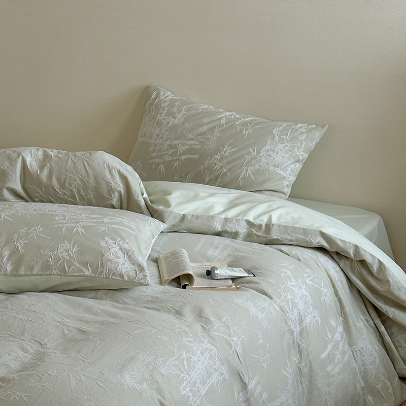 中国風竹葉60棉色織ジャカード4点セットベッド笠金ベッド用品綿布団シーツ1.8