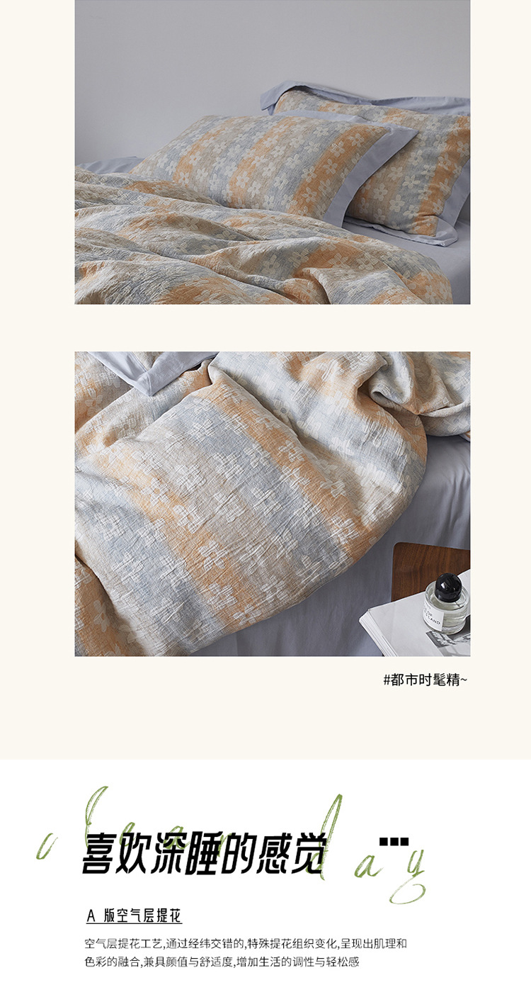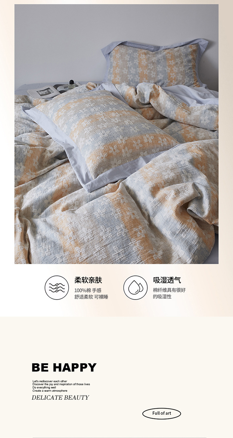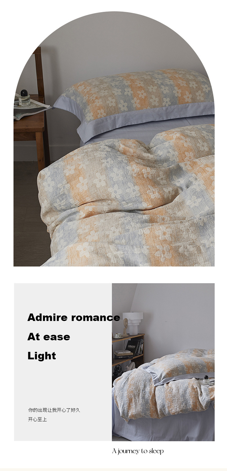 中国風竹葉60棉色織ジャカード4点セットベッド笠金ベッド用品綿布団シーツ1.8