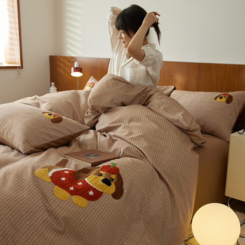 卡通风童趣全棉纯棉磨毛加厚四件套秋冬被套1.5/1.8m床笠床上用品