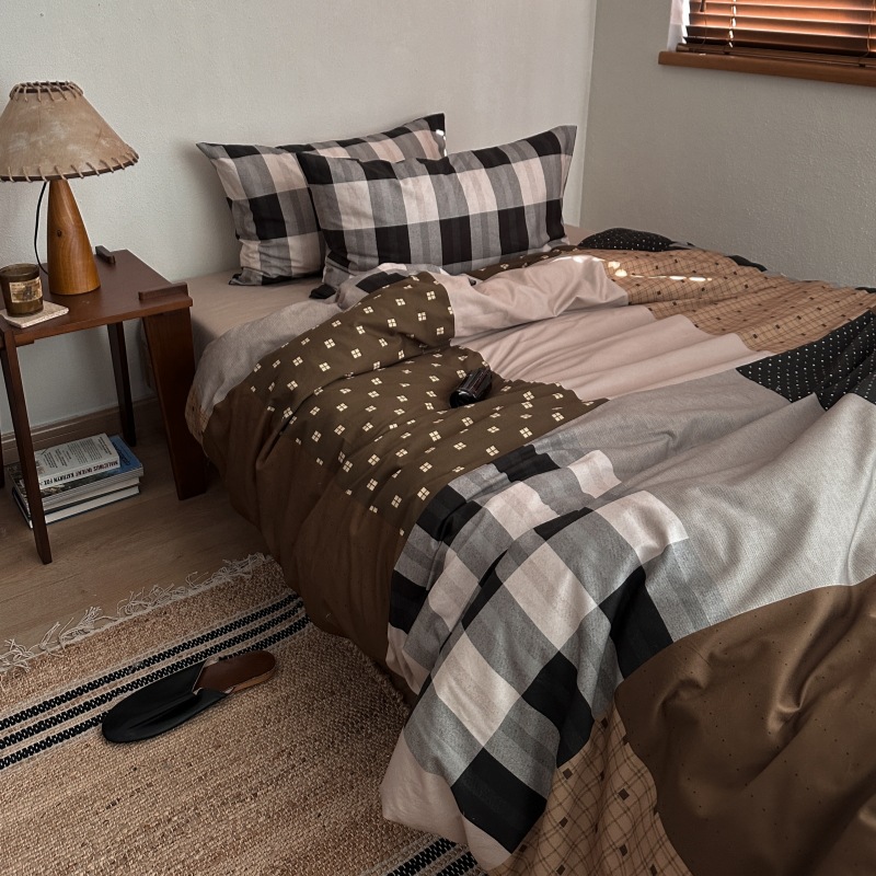 クラスA 母子綿二層しわ糸4点セット 純綿ガーゼ 綿100 花柄チェック柄 フレッシュコットン寝具