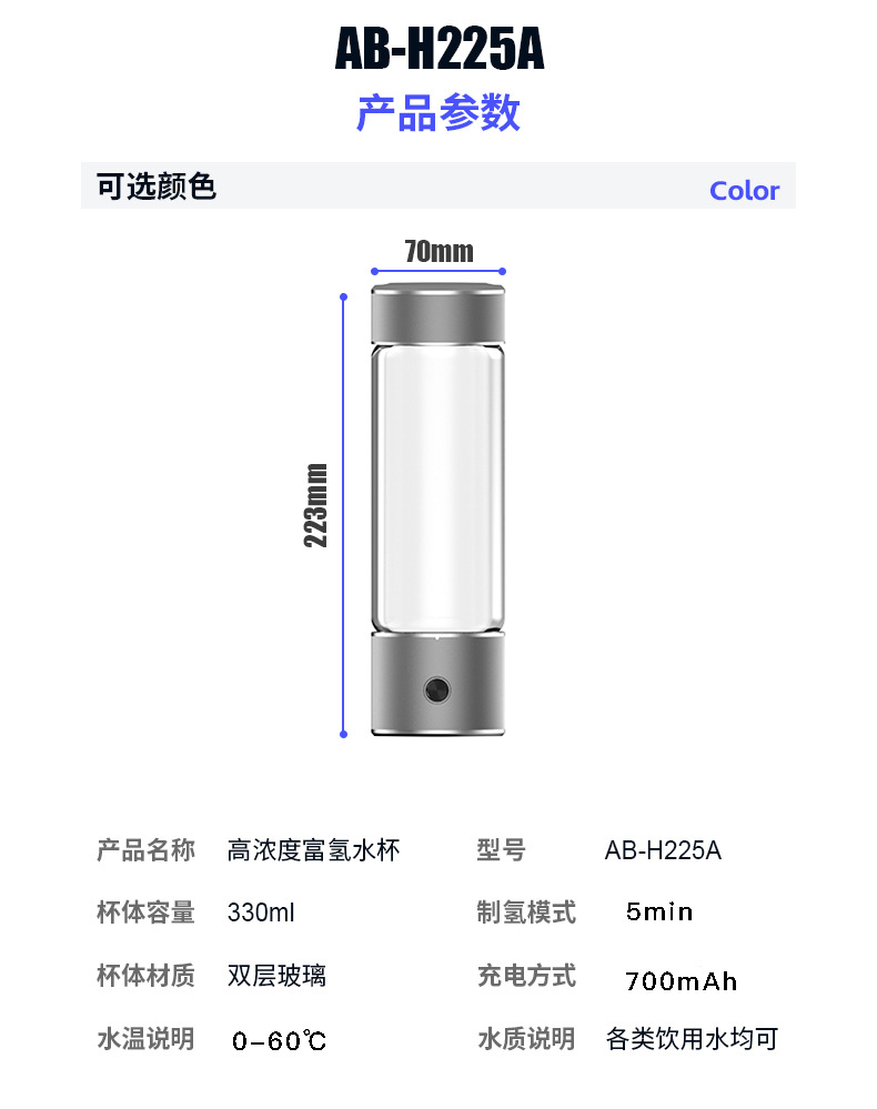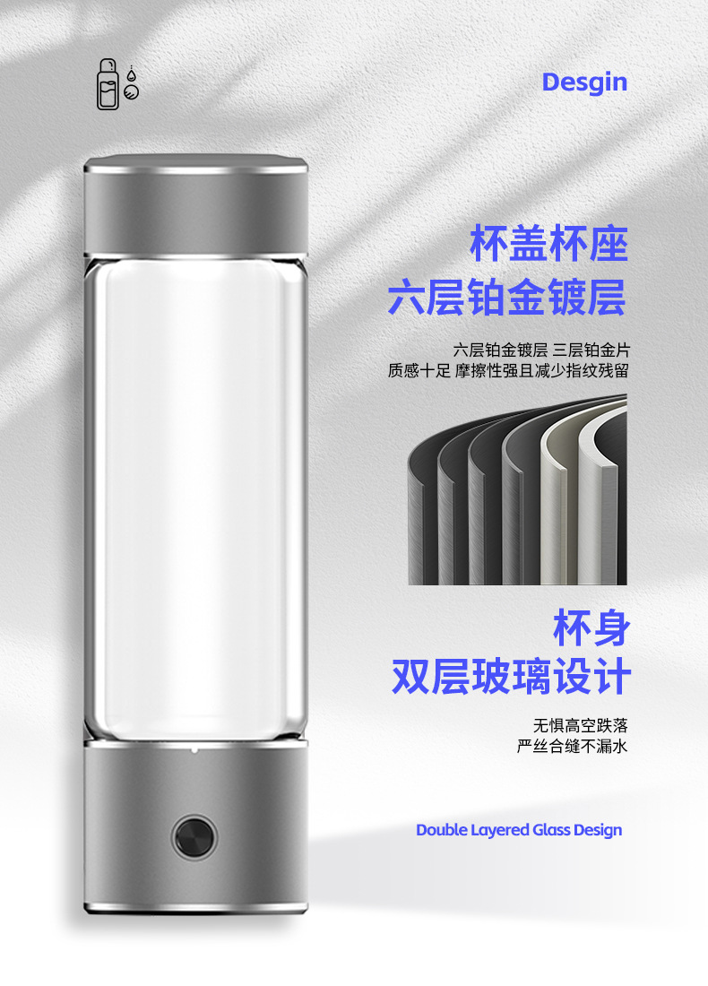 高颜值高浓度富氢水杯制氢水杯电解水素水杯养生氢氧分离富氢杯