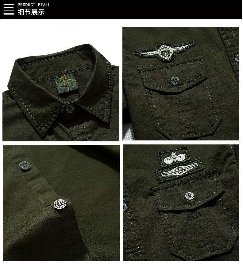 クロスボーダー新作春メンズ長袖シャツ男格好いいカジュアル軍工内装身型多ポケットバッジシャツ