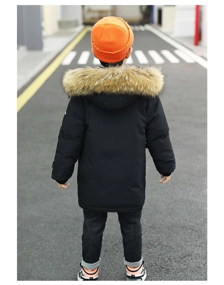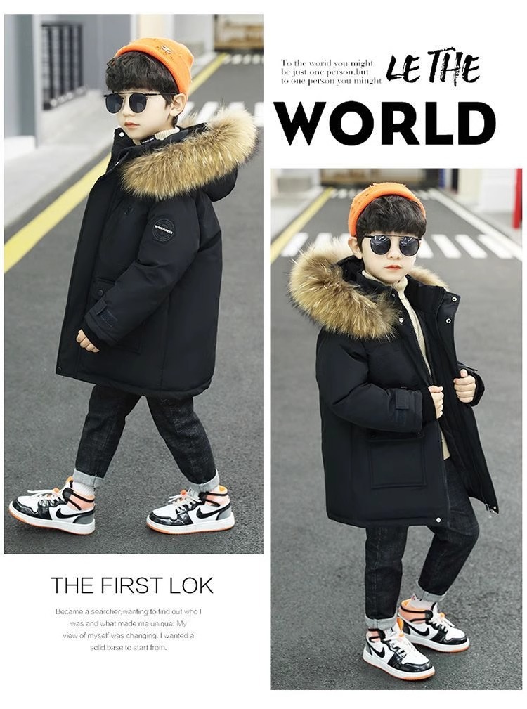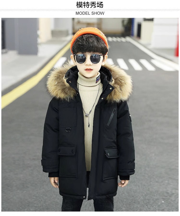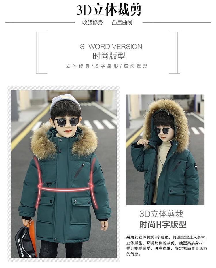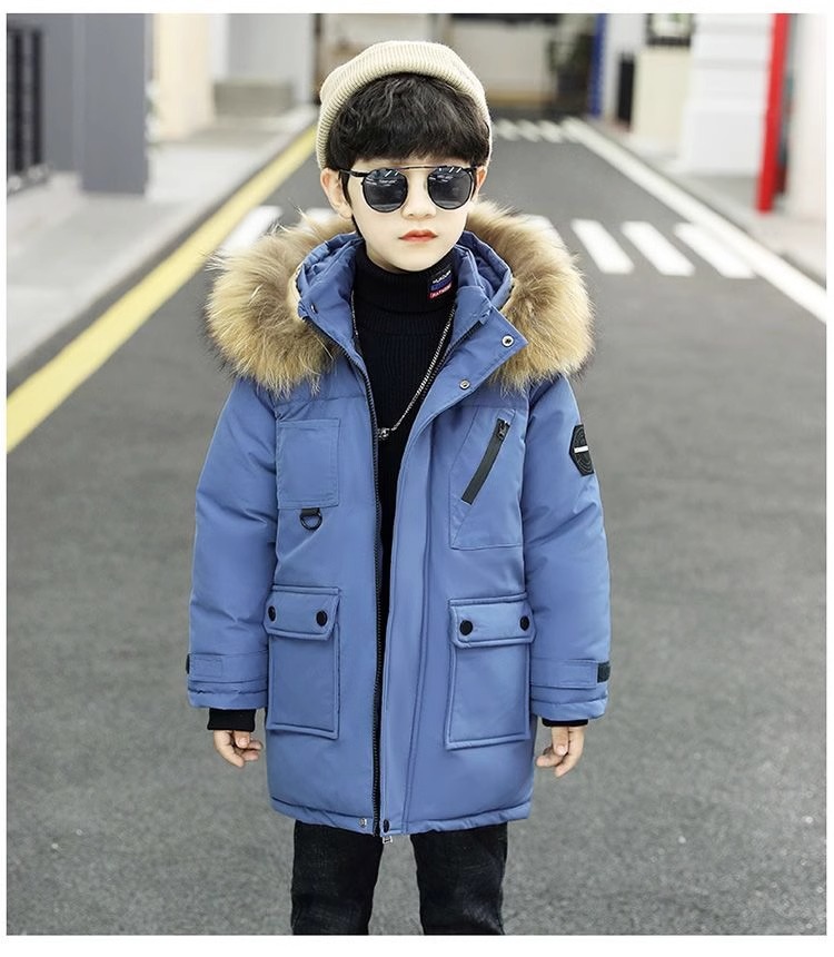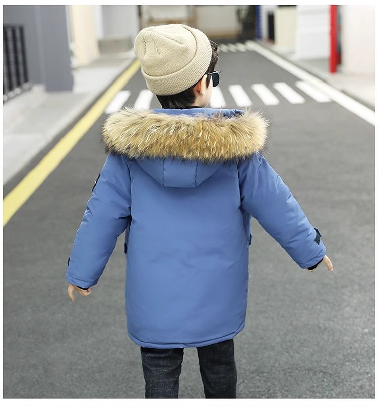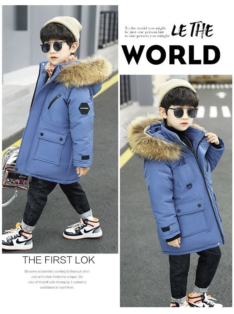 男の子の中の大きい子供のダウンの綿服の子供のベルベットの子供の長いタイプのコートの男の子の秋冬の韓国版の紳士服の綿服