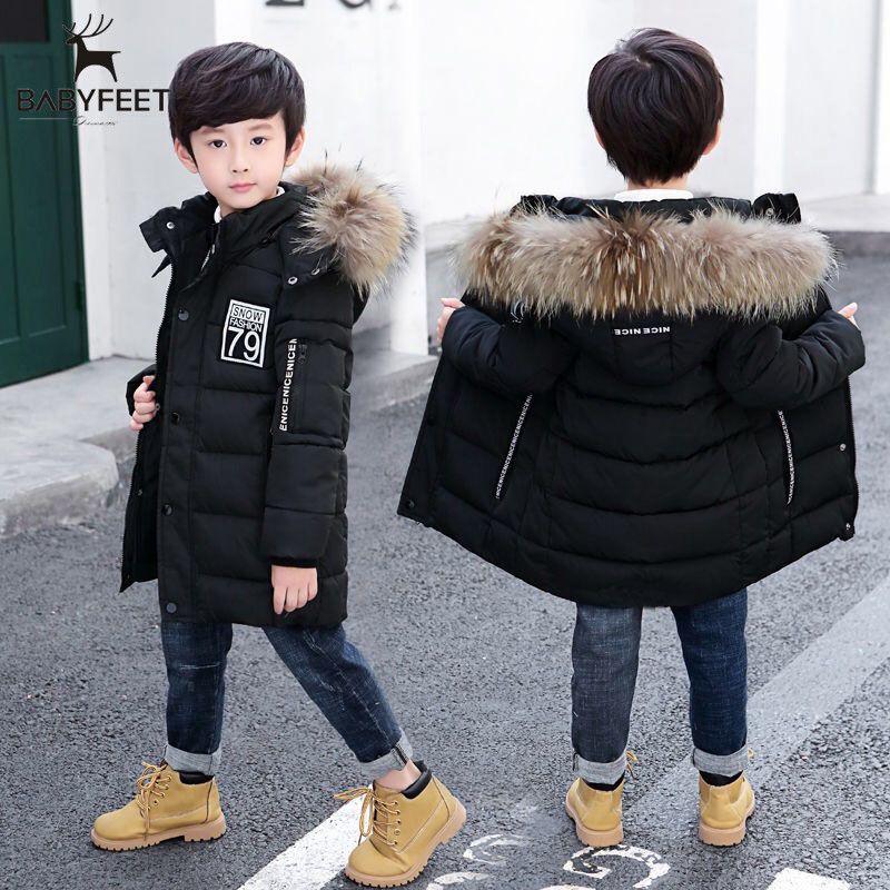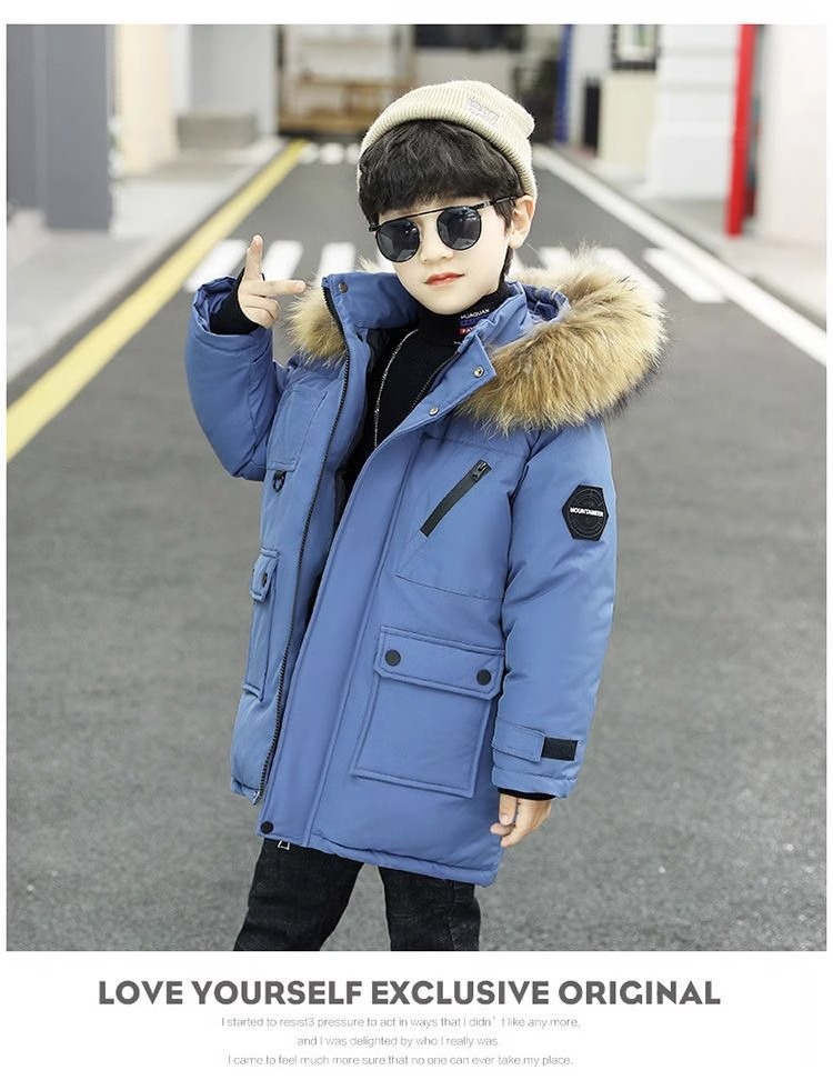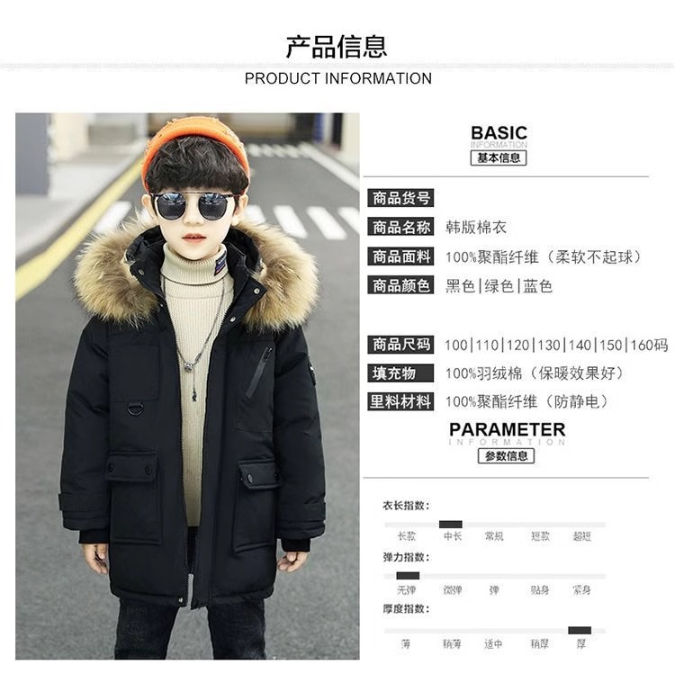 男の子用綿入れ冬用コート2025 ダウン綿入り中大児用綿入れジャケット 裏起毛綿入れコート ファー襟付き保温 中小児用